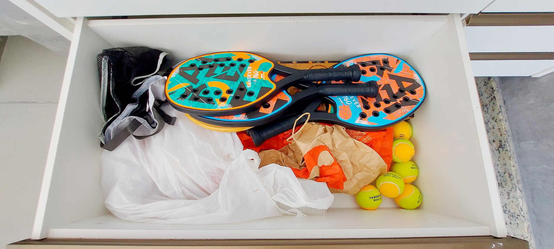 - articulated wooden table, small wooden table, plastic table, plastic chair, fruit bowl, duplex refrigerator, air purifier, 5-burner gas cooktop, blender, airfryer, electric oven, electric coffee maker, sandwich maker, microwave, air filter water, custom cabinets (2 DOORS ARE LOCKED), plastic pots, trays, plates, glasses, mugs, cutlery and kitchen accessories, pans, couscous dish