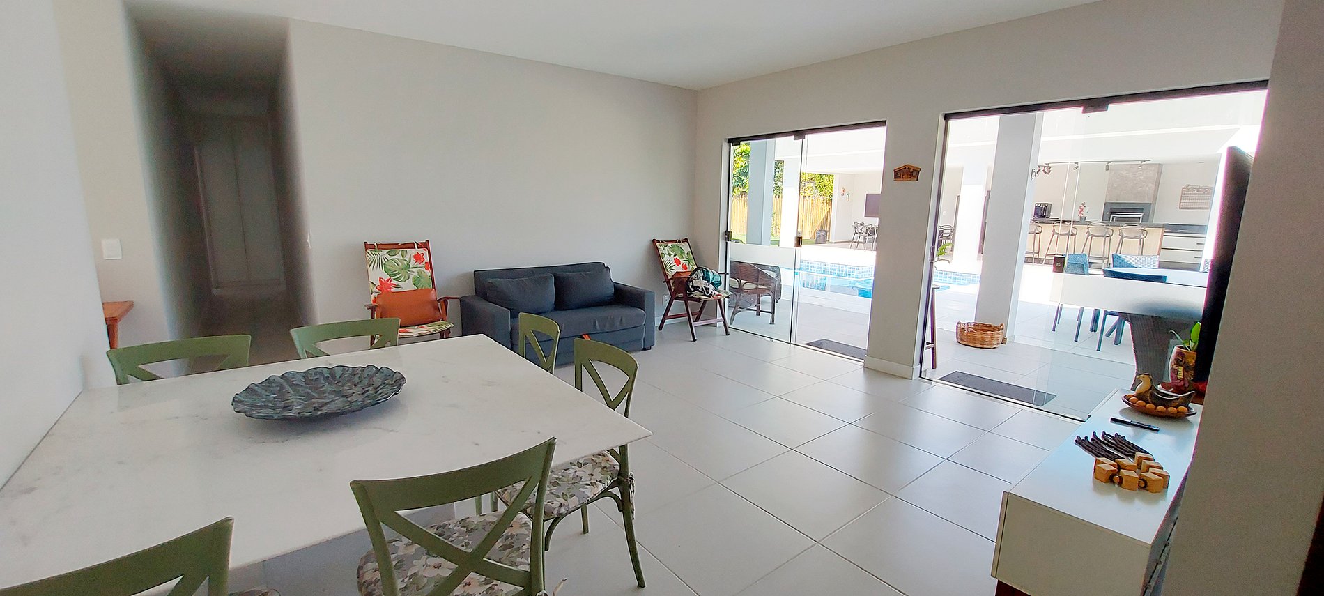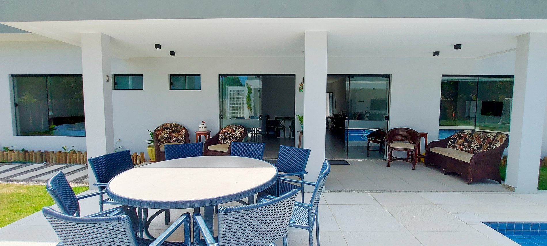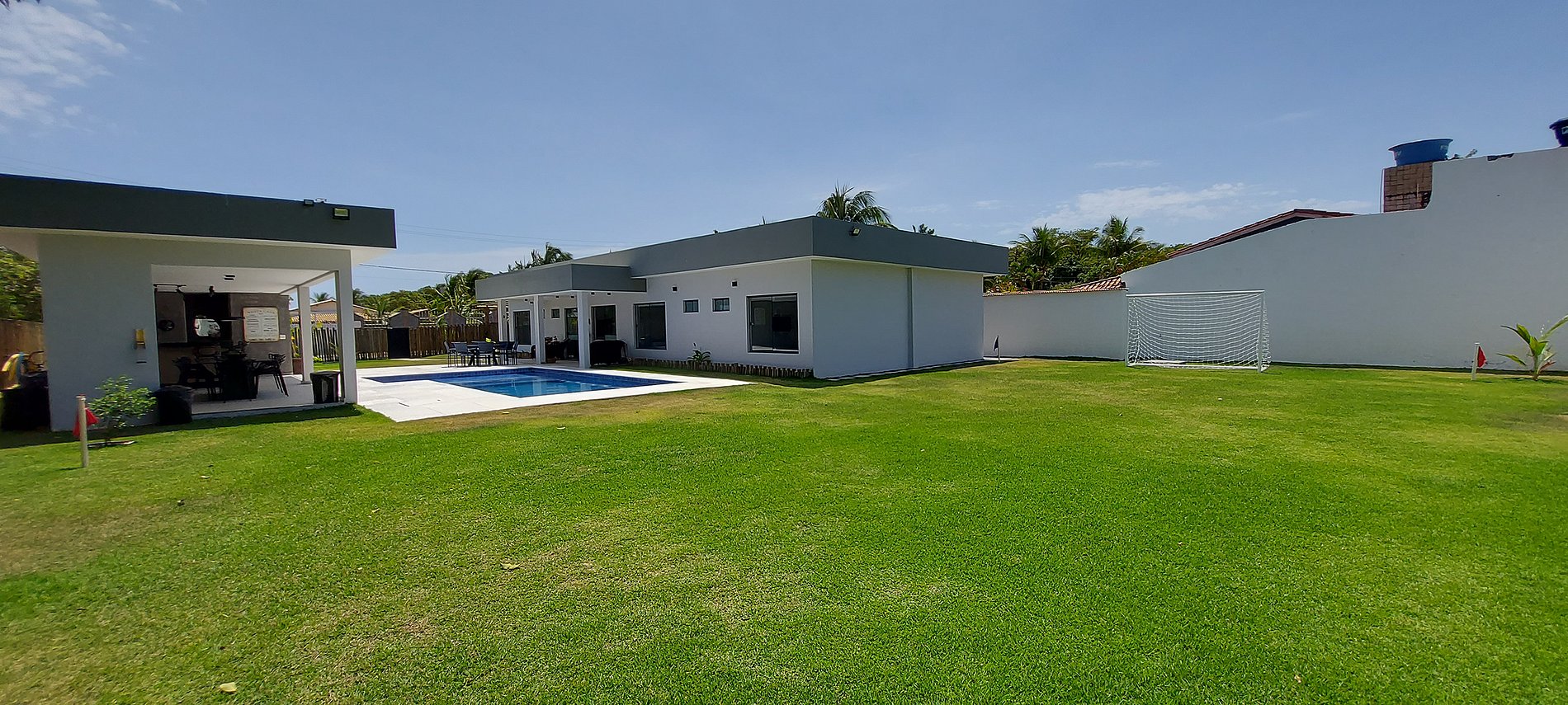 Beautiful single-story house with 6 suites in a gated community in Jauá. Maximum capacity of 21 people (including children). With swimming pool and a private mini football field, complete gourmet area, garden, WI-FI and garage for 5 cars. The condominium has a children's playground, football field and is 1km from the beach. The ideal place for you to enjoy with the whole family!