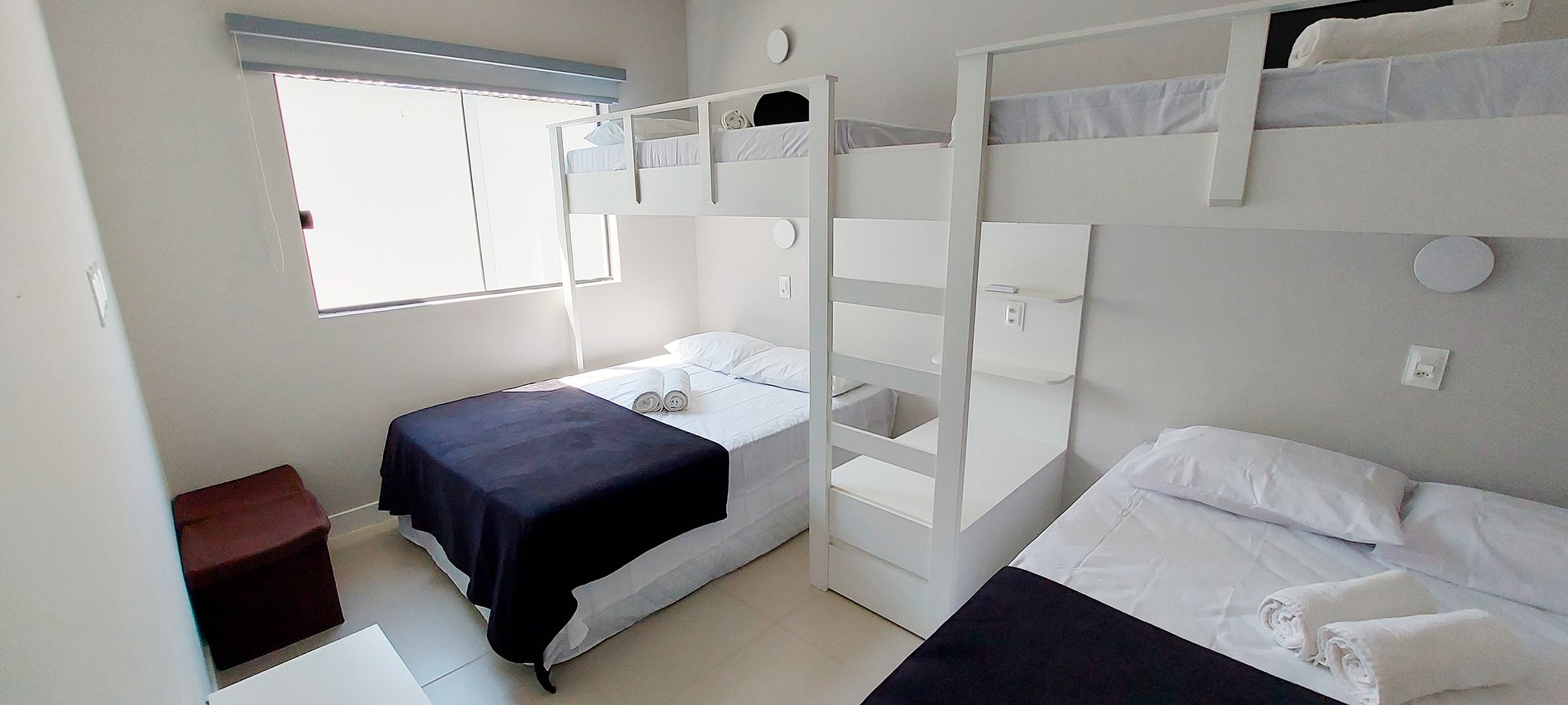 - SUITE 4 (opposite suite 3): 2 double beds with 2 single bunk beds with fitted wardrobes, chest of drawers (THE TWO TOP DRAWERS ARE LOCKED), clothes rack, split air conditioning, blackout curtain, bathroom with sink and mirror large, hygienic shower, electric shower, glass shower, mini clothesline