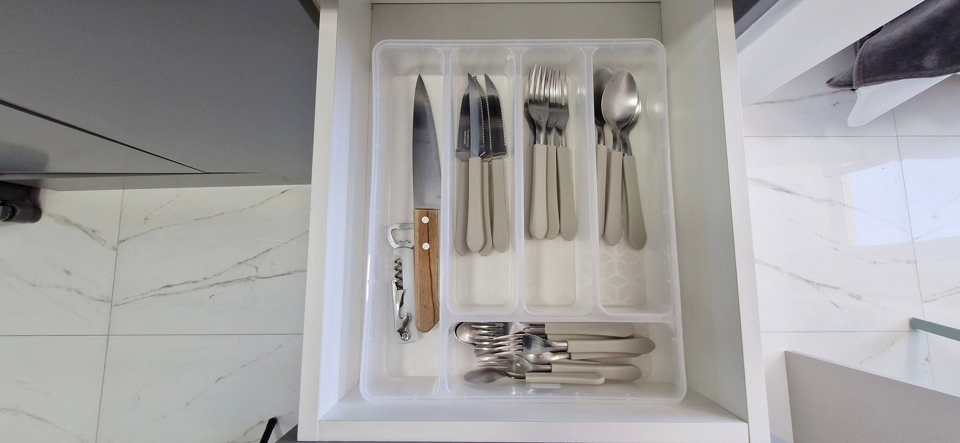 - Complete kitchen with duplex refrigerator, electric cooktop with 2 burners, water filter, countertop with two stools, electric coffee maker, microwave, sandwich maker, blender and basic kitchen items.