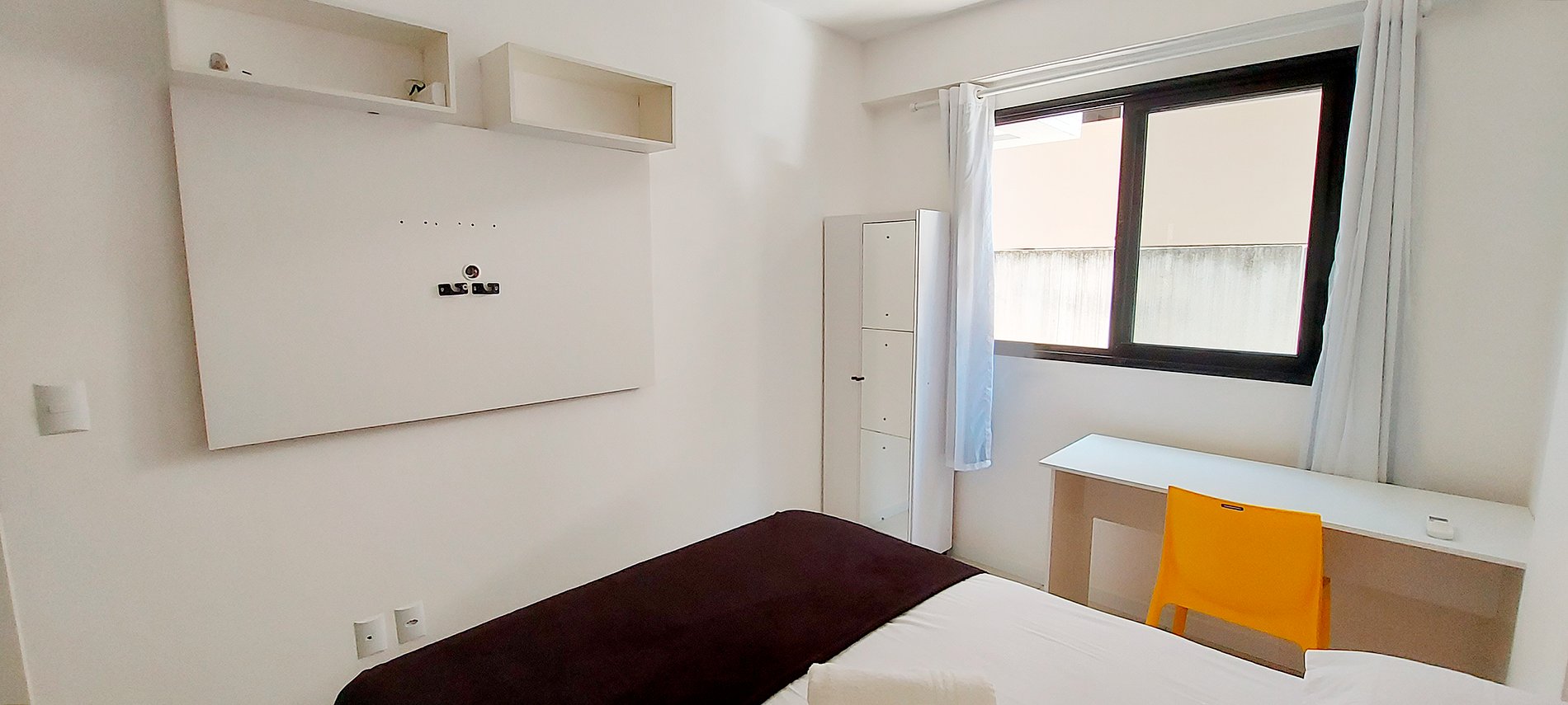Beautiful bedroom and living room close to Ondina beach and the zoo! Super well located! It has a full kitchen, split air conditioning in the living room and bedroom. Space for work. Double sofa bed in the living room (see photos of it open before booking), table fan, SMART TV, high-speed WI-FI.