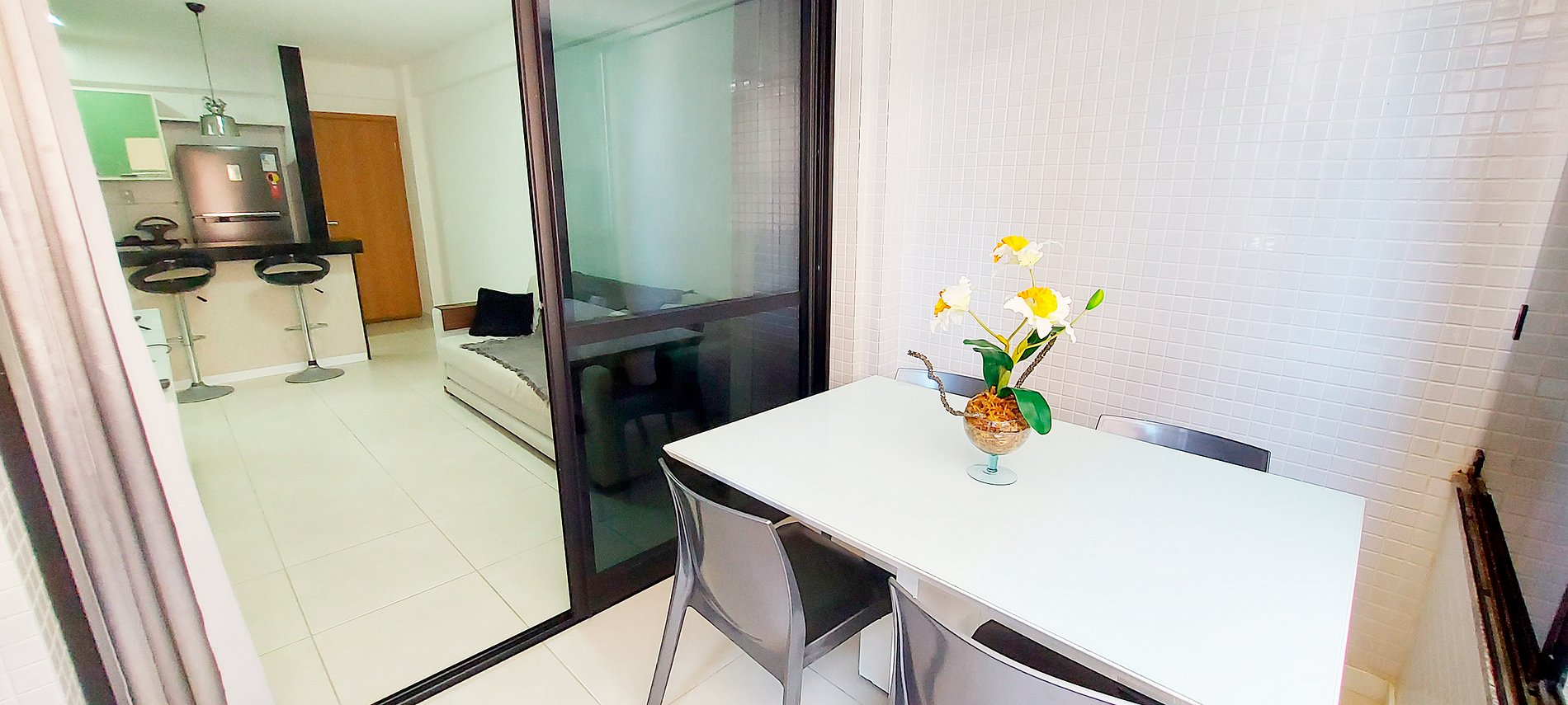 - Balcony with table and four chairs