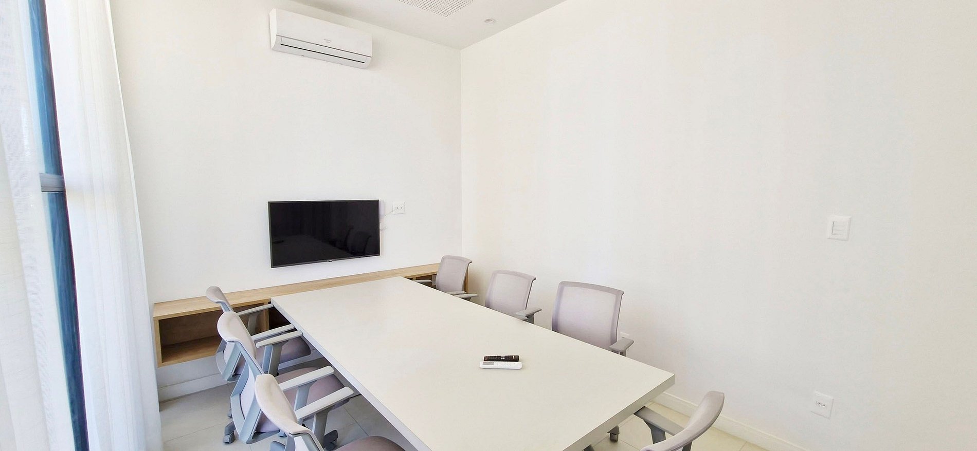 - BEDROOM: queen bed, wardrobe, split air conditioning, blackout curtains, mirror