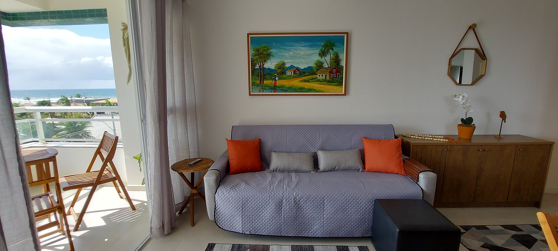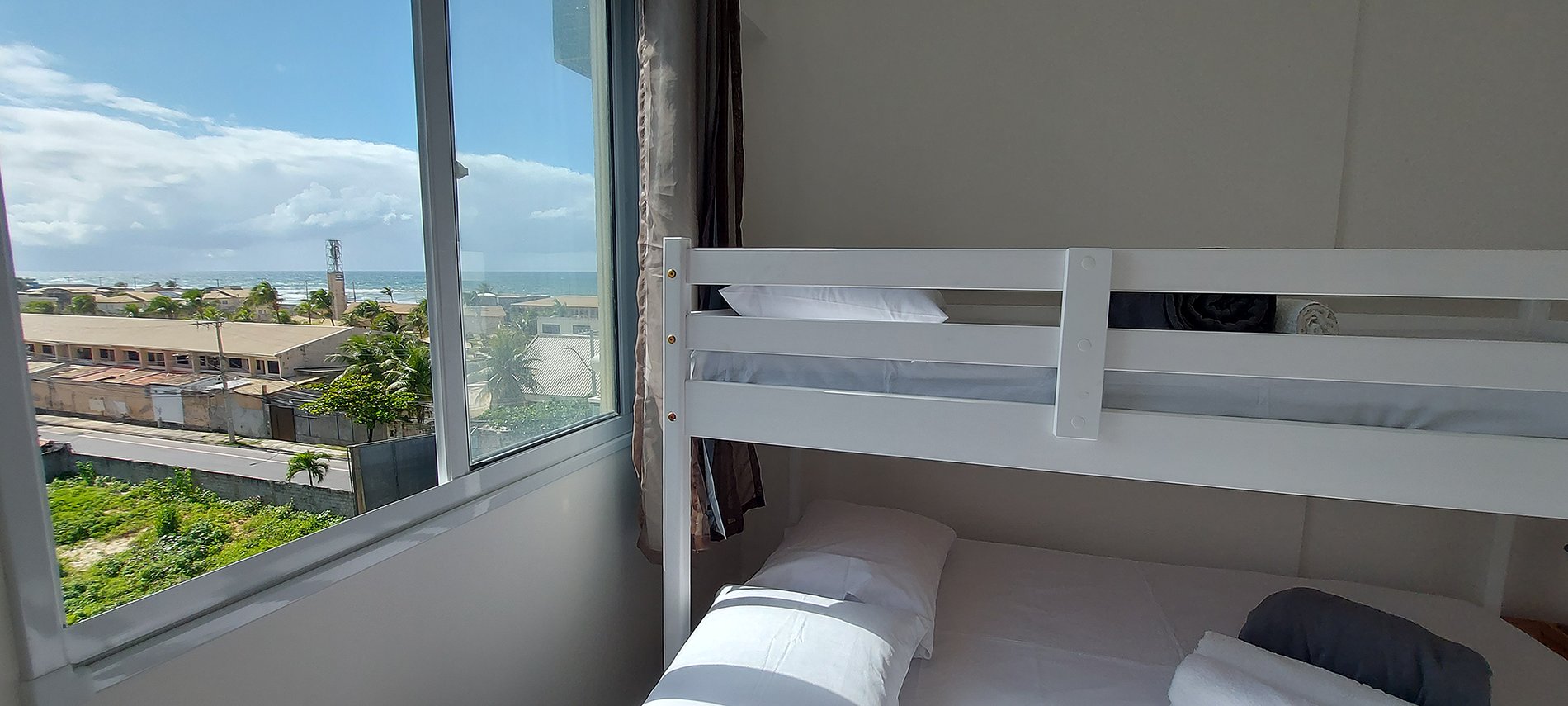 Bedroom and living room apartment with balcony and sea views of Ipitanga beach. Located on the 3rd floor, it has a smart TV, WI-FI, split air conditioning in the bedroom, kitchen with laundry area and washing machine. New building, with swimming pool, coworking and garage.