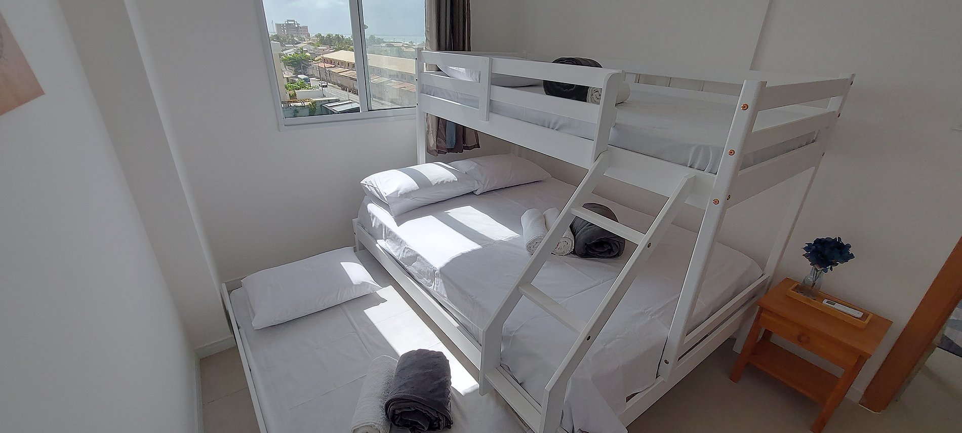 - The bed in the room is a "triliche for 4 people": it is a double bed, with a single bed on top and a single pull-out bed below (SEE PHOTOS).
