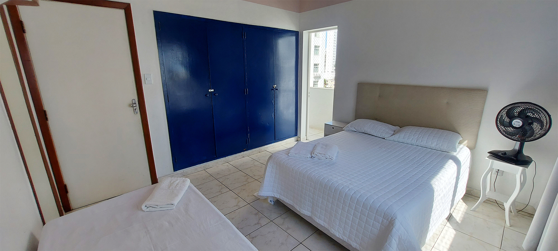 Apartment with 3 bedrooms (one of the bedrooms is a suite), a balcony in the living room and another balcony shared by 2 bedrooms. located near Campo Grande, Graça and Barra. Kitchen, split air conditioning in one of the bedrooms and fan in the other two bedrooms, TV with open local channels, WI-FI 200MB, 1 parking space in a row