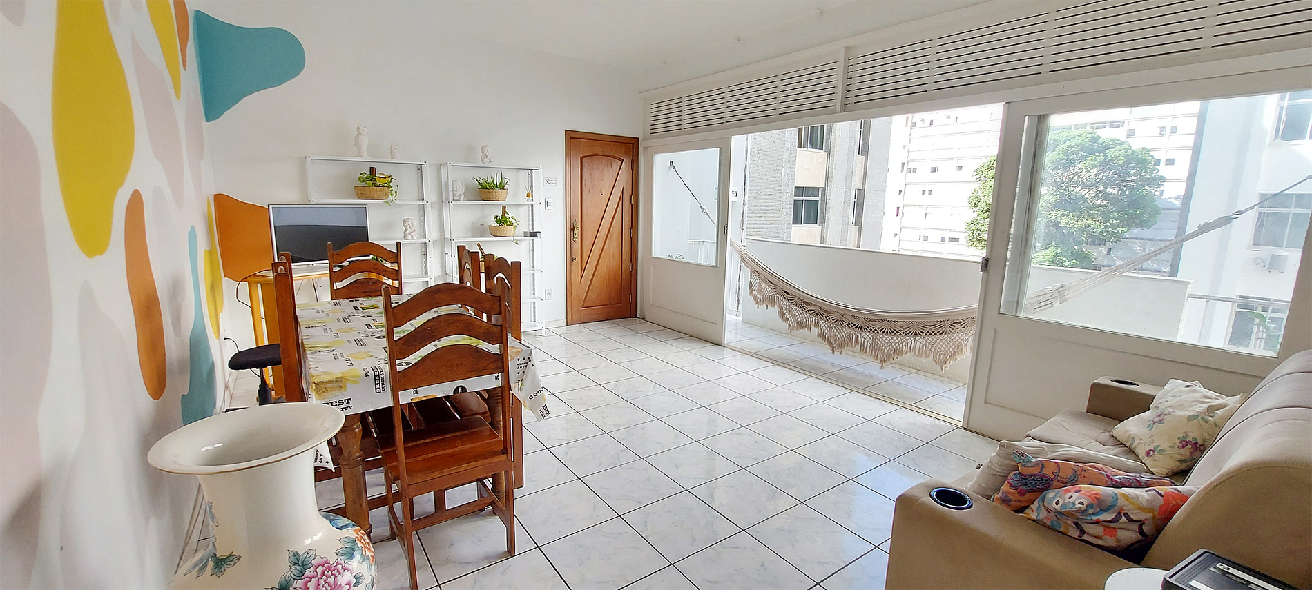 - Large balcony with hammock and potted plants