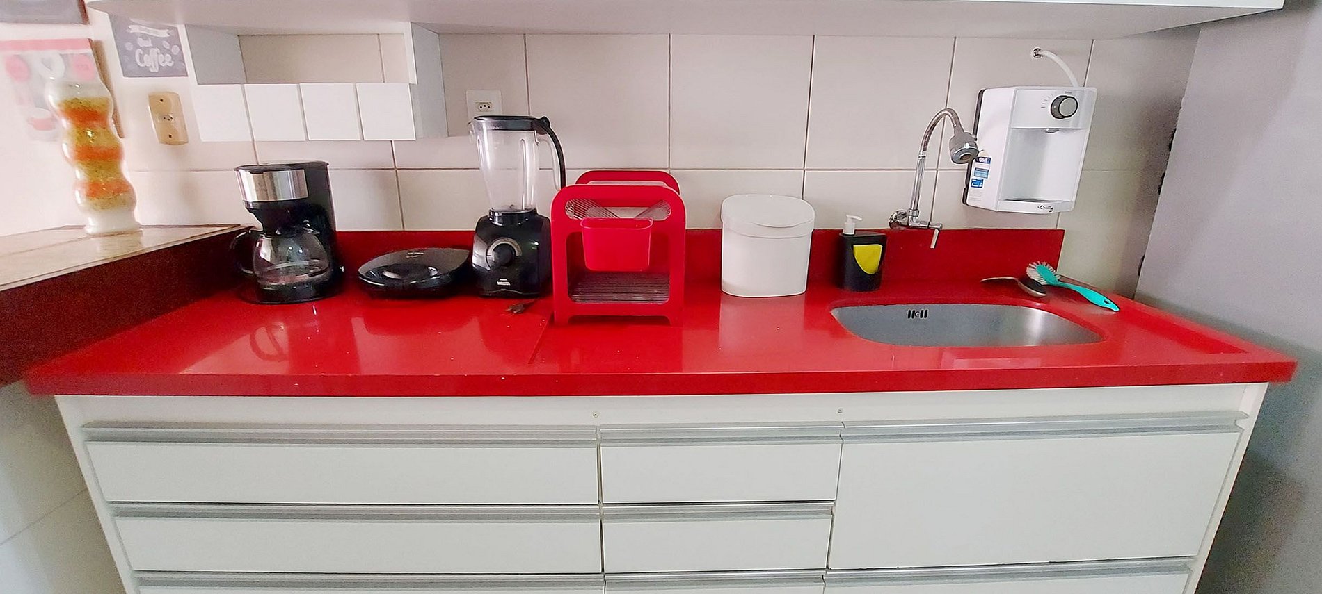 - Electric coffee maker, sandwich maker, blender, water filter, electric oven