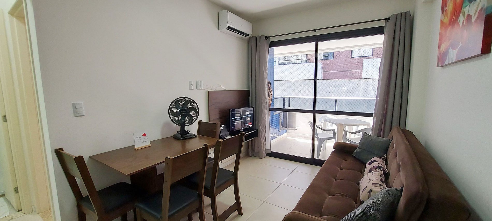 Bedroom and living room with balcony, close to Ondina beach and the zoo! Super well located! It has a full kitchen, split air conditioning in the living room and bedroom. Workspace. Double sofa bed in the living room (see the photos of it open before booking), table fan, SMART TV, high-speed WI-FI. Kitchen with washing machine.