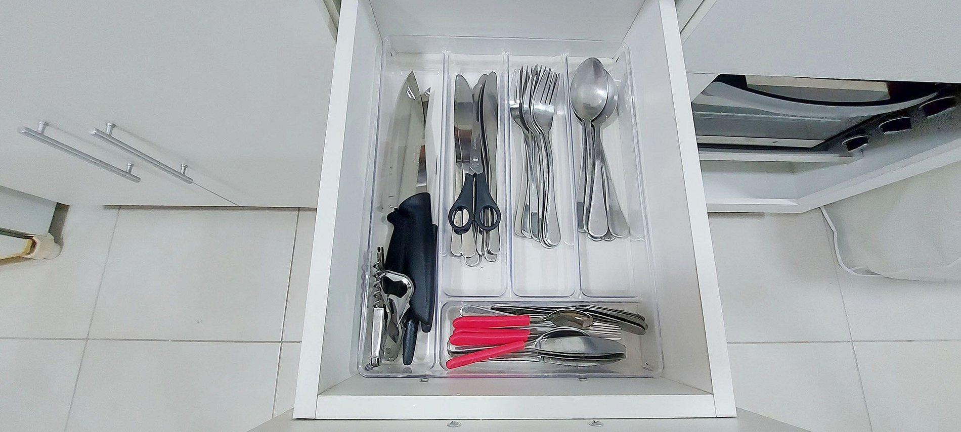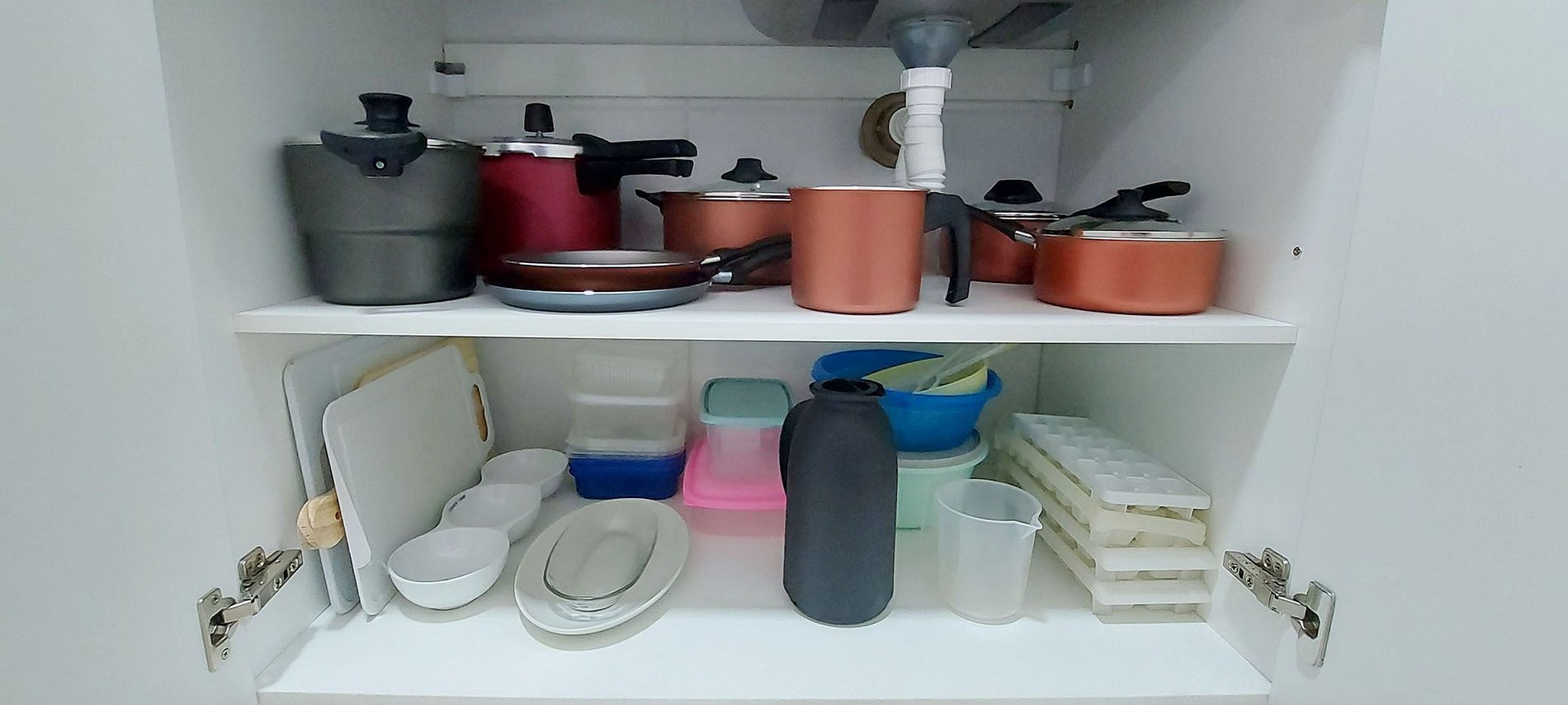 - Kitchen with refrigerator, 4-burner gas cooktop, electric oven, air purifier, water filter, thermos, sandwich maker, microwave, blender, electric coffee maker, pressure cooker and basic kitchen items