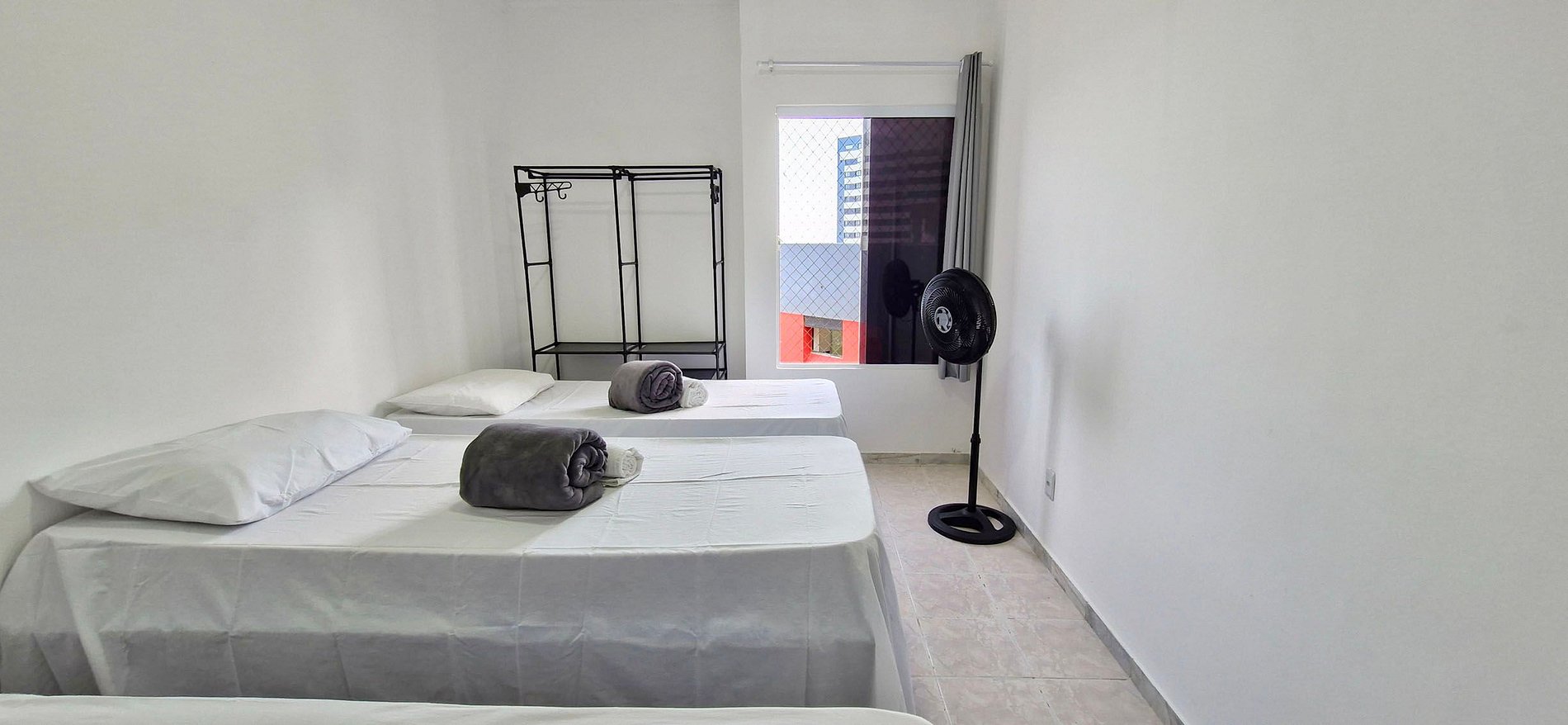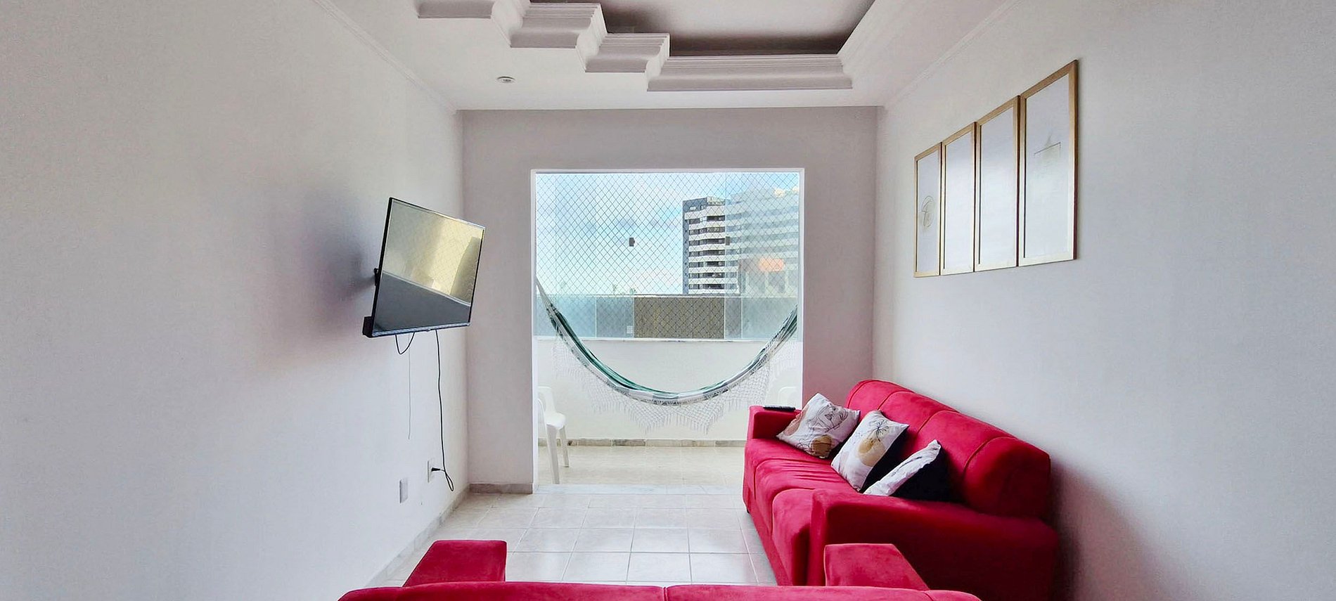 Apartment close to Armação beach for up to 5 people. With 2 bedrooms, 1 office, living room with smart TV, WI-FI, small balcony with sea view and hammock, 1 bathroom, kitchen, laundry area with washing machine and another bathroom with shower (not electric shower).
