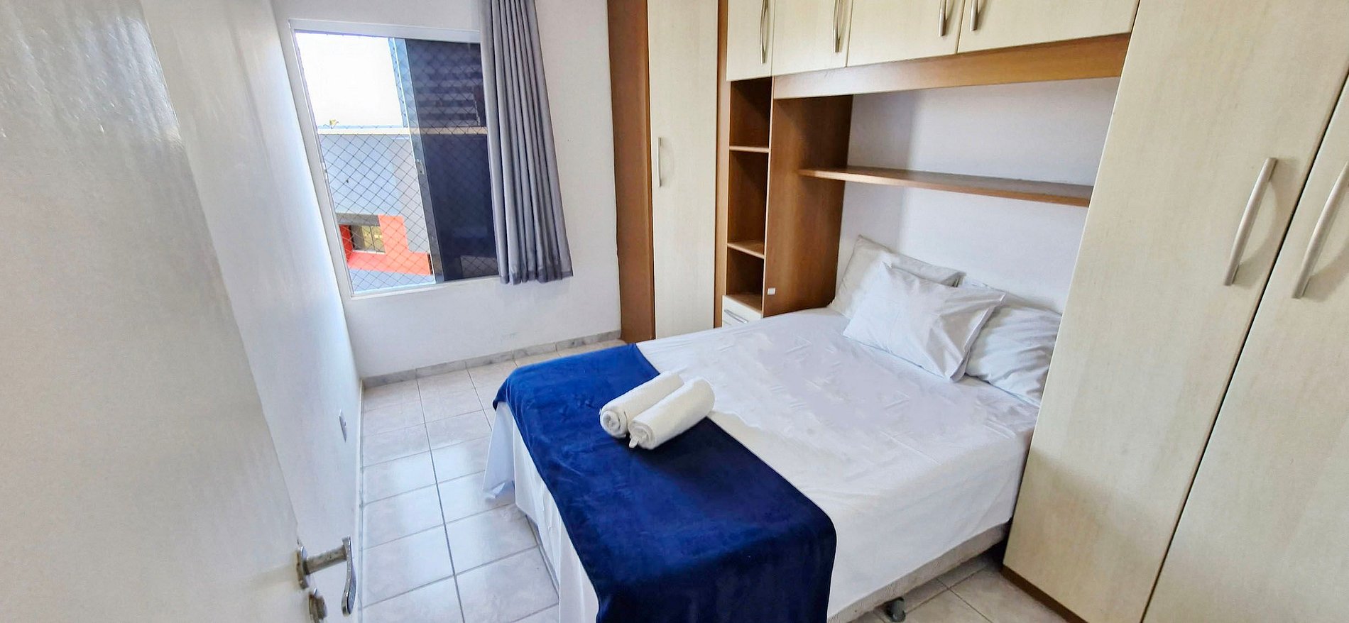 - Double bed, large wardrobe, ceiling fan, vacuum cleaner, blackout curtains, safety net