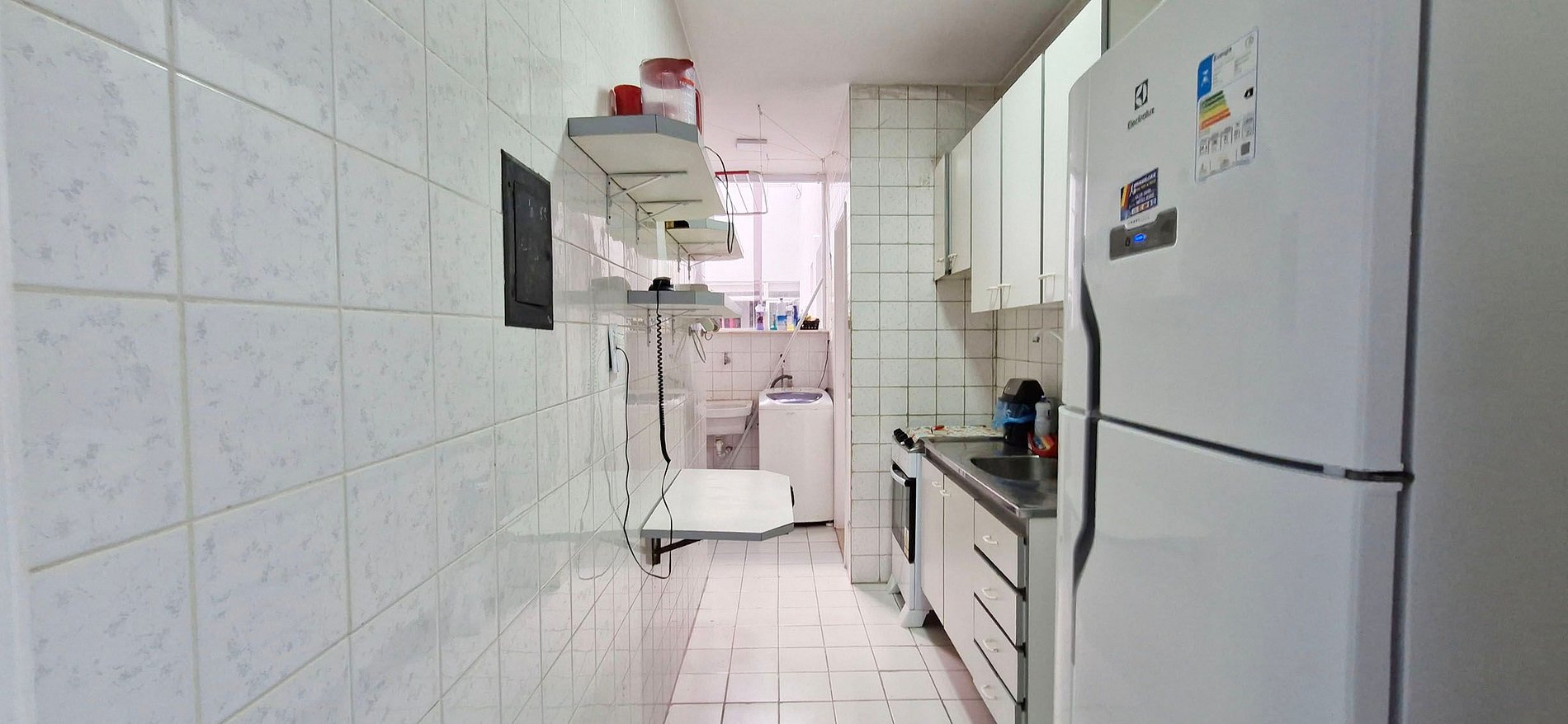 - Washing machine, sink, ceiling clothesline