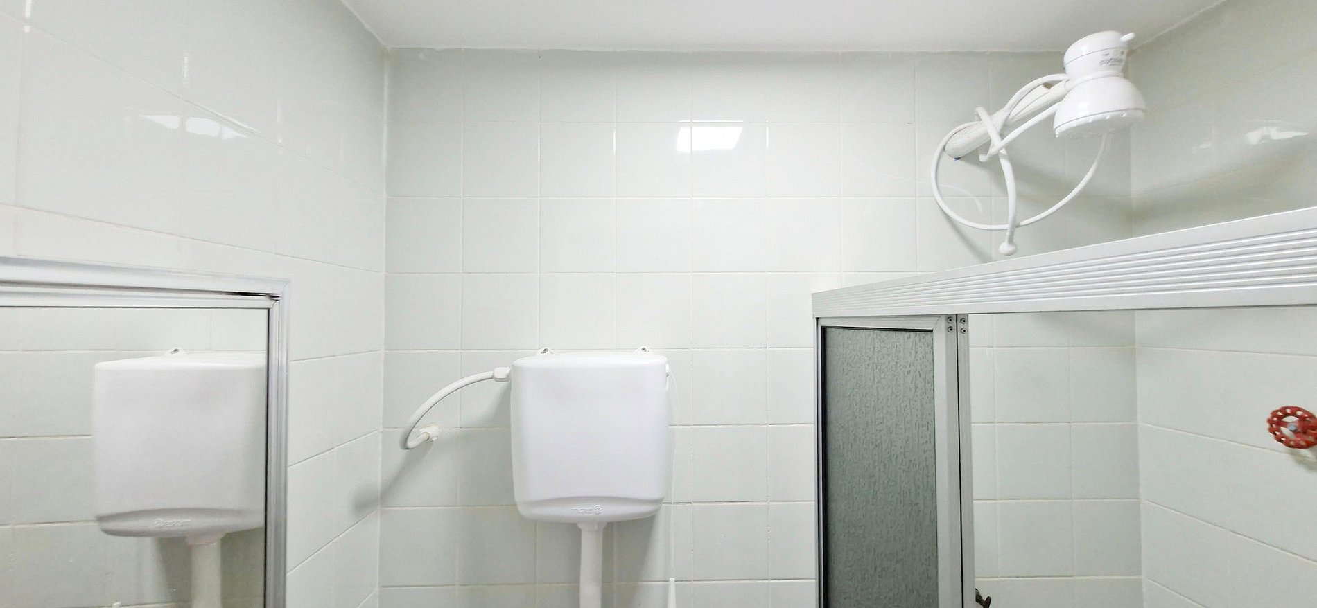 - Cabinet, mirror, shower stall, electric shower