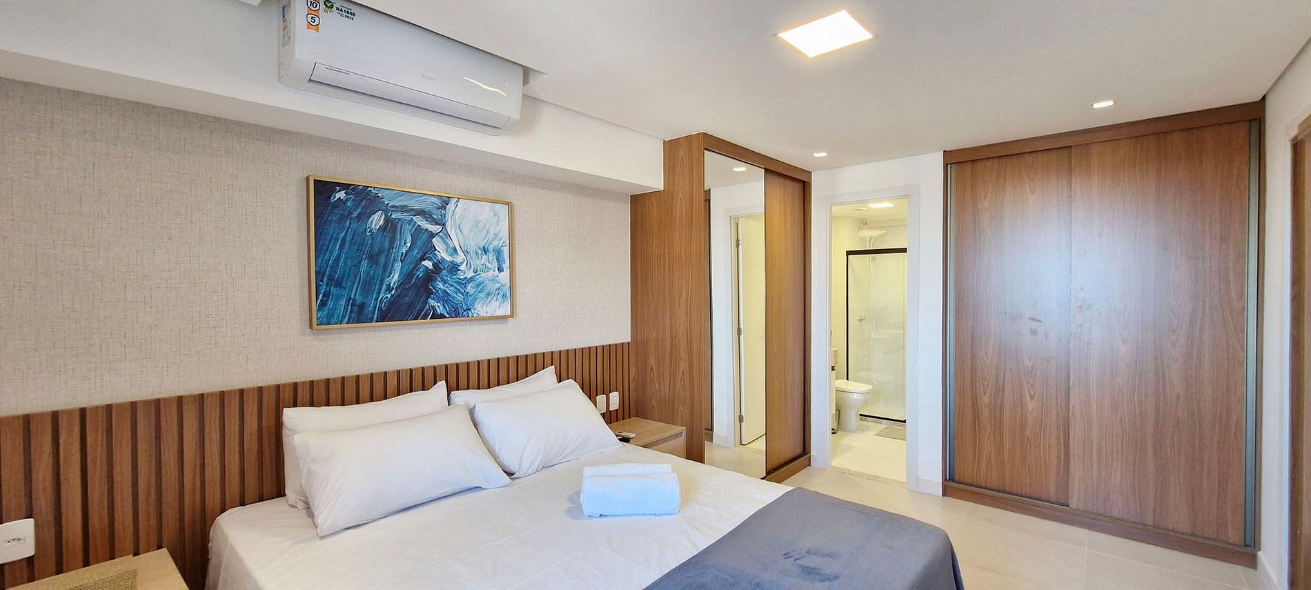 - Queen bed, 2 wooden nightstands, split air conditioning, rack with smart TV (apps and local channels), 2 wardrobes, large mirror, ironing board and iron inside the wardrobe, blackout curtain, painting and decorative items