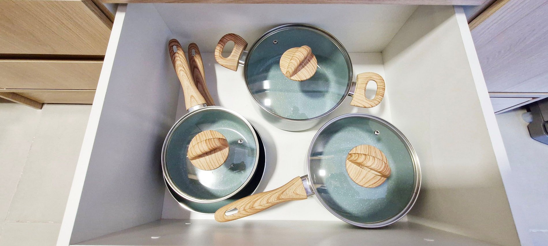 - Duplex refrigerator, sink with water filter, electric coffee maker, blender, sandwich maker, thermos, 4-burner induction cooktop, air purifier, electric oven, pots, cutlery, pans and various kitchen accessories