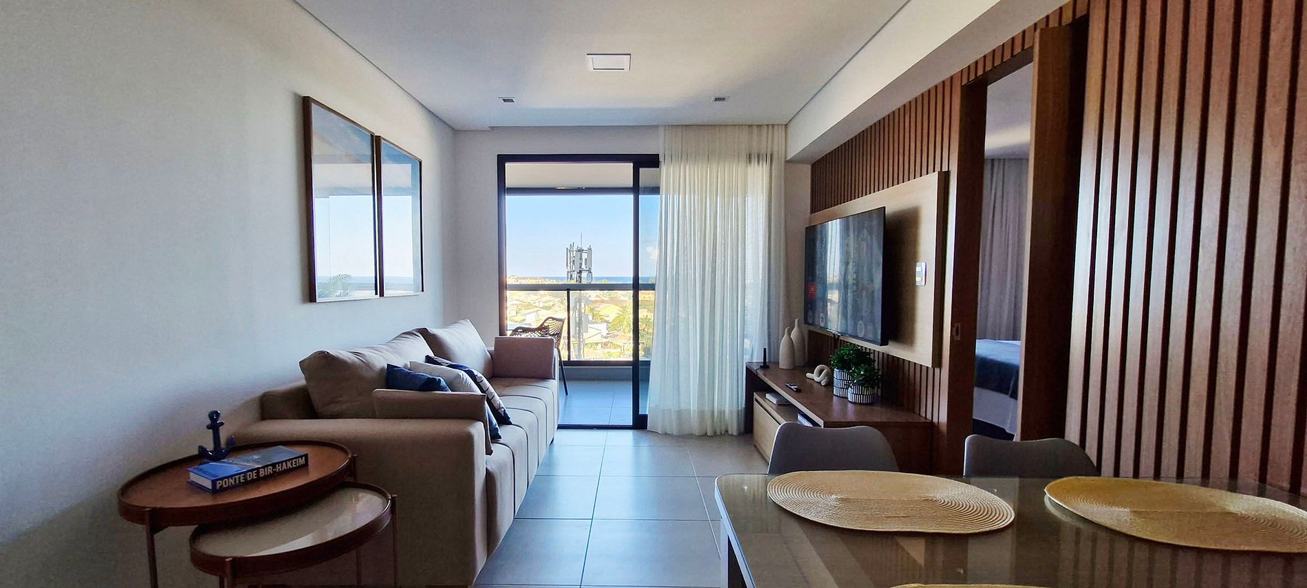 Beautiful 2-bedroom apartment (1 suite), east-facing, with a large balcony with sea views, located in a new condominium in Stella Maris! Close to the beach and local shops! With smart TV in the living room and bedroom (apps and local channels), WI-FI, split air conditioning in the bedrooms, and a kitchen. Penthouse with pool and gym. Garage and 24-hour reception.