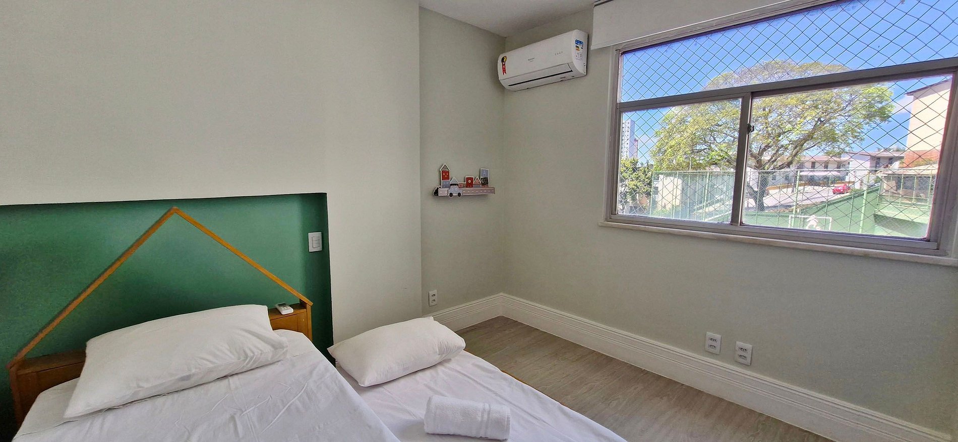 BEDROOM 3 - single bunk bed, split air conditioning, blackout curtain, protective screen, wardrobe with mirror and decorative items