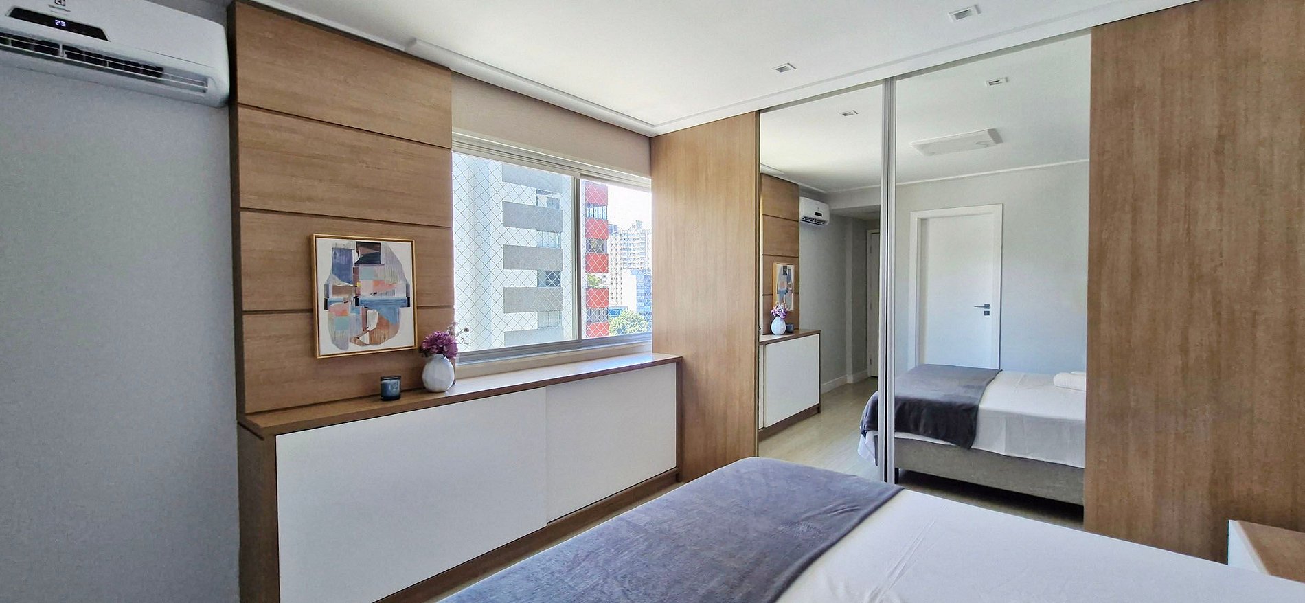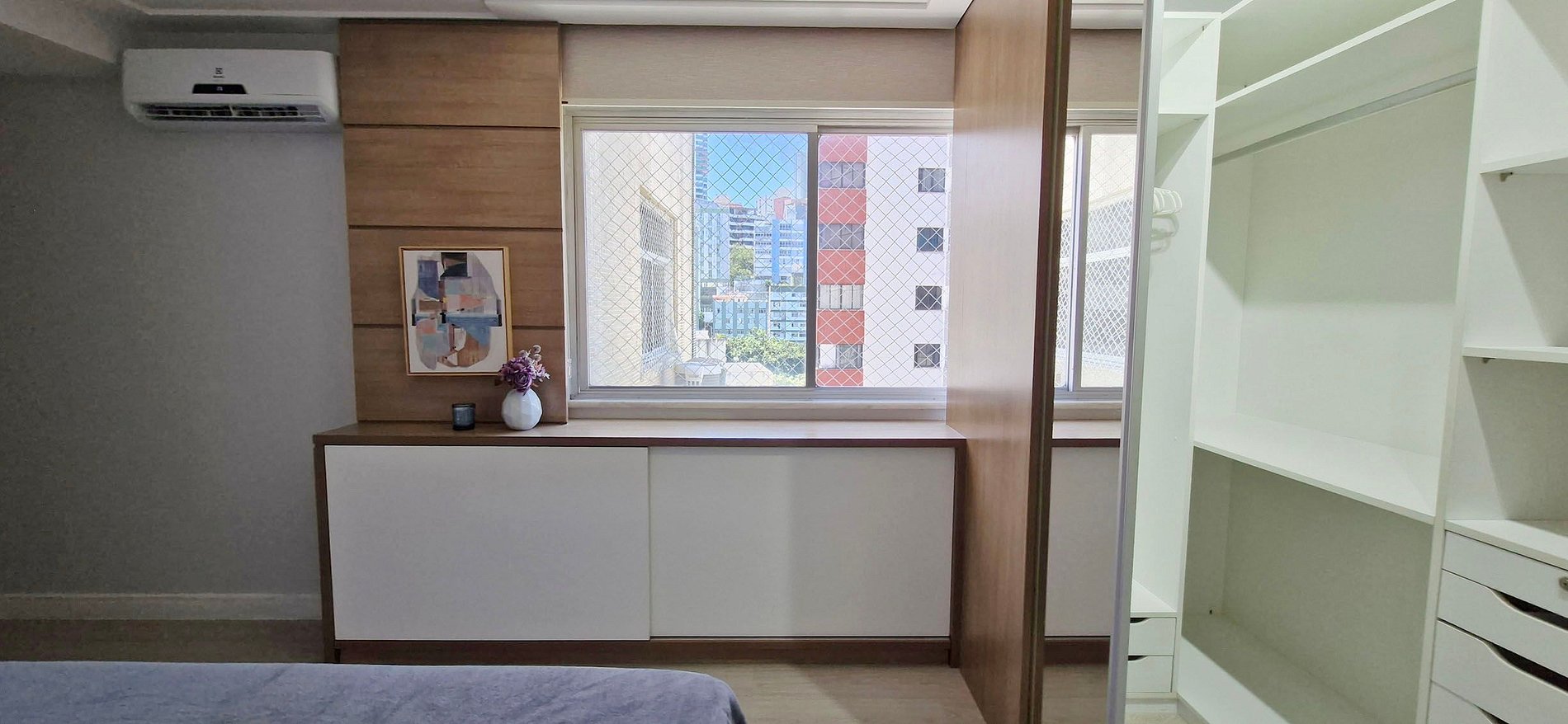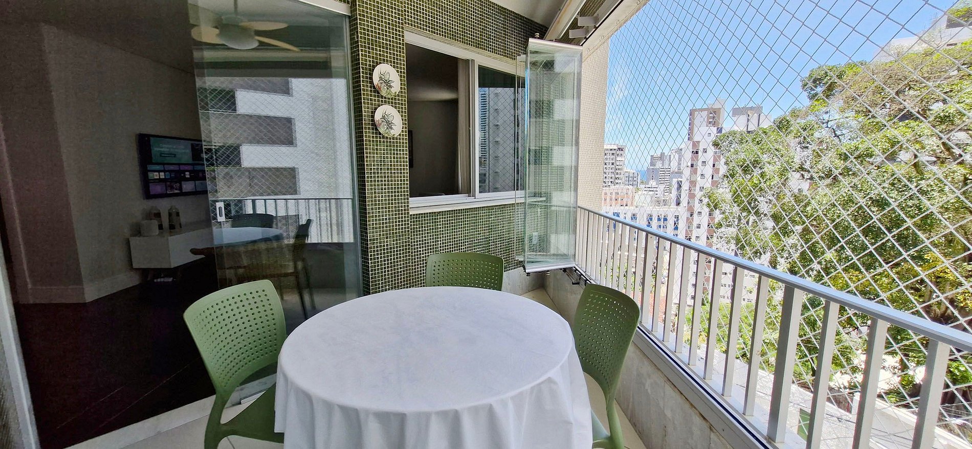 Spacious 3-bedroom apartment with balcony, located near Jardim Apipema and Barra shopping mall. It has a full kitchen, split air conditioning in all bedrooms, work space, SMART TV, high-speed WI-FI. Full kitchen with dishwasher and laundry area with washing machine.