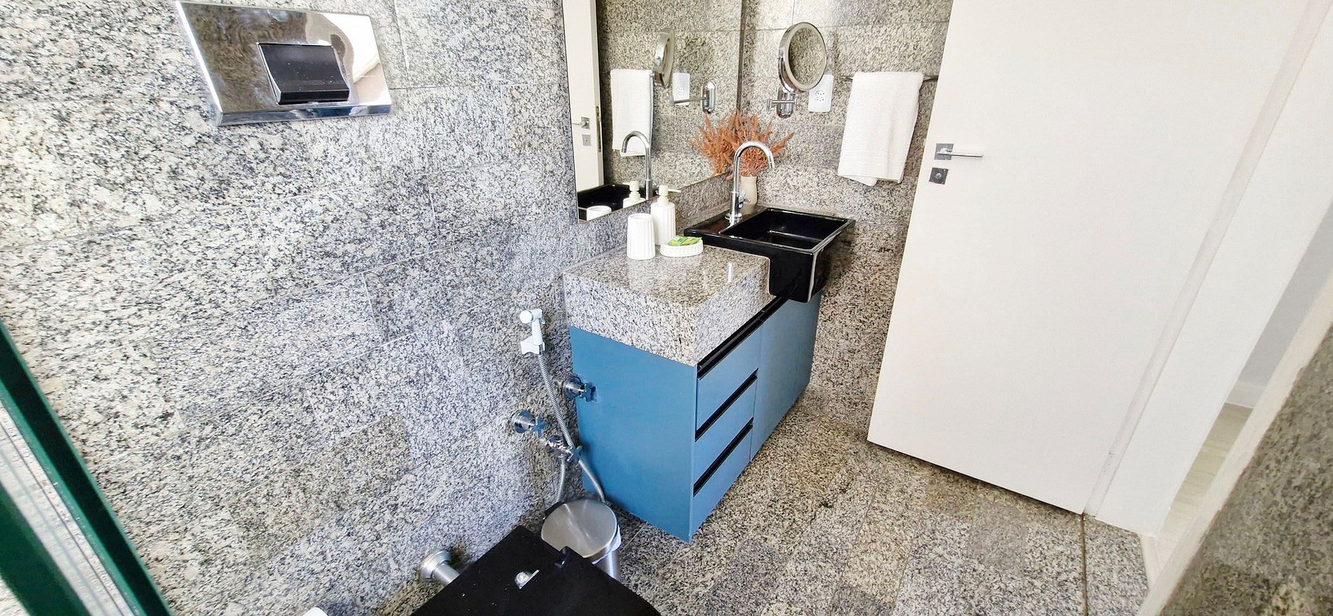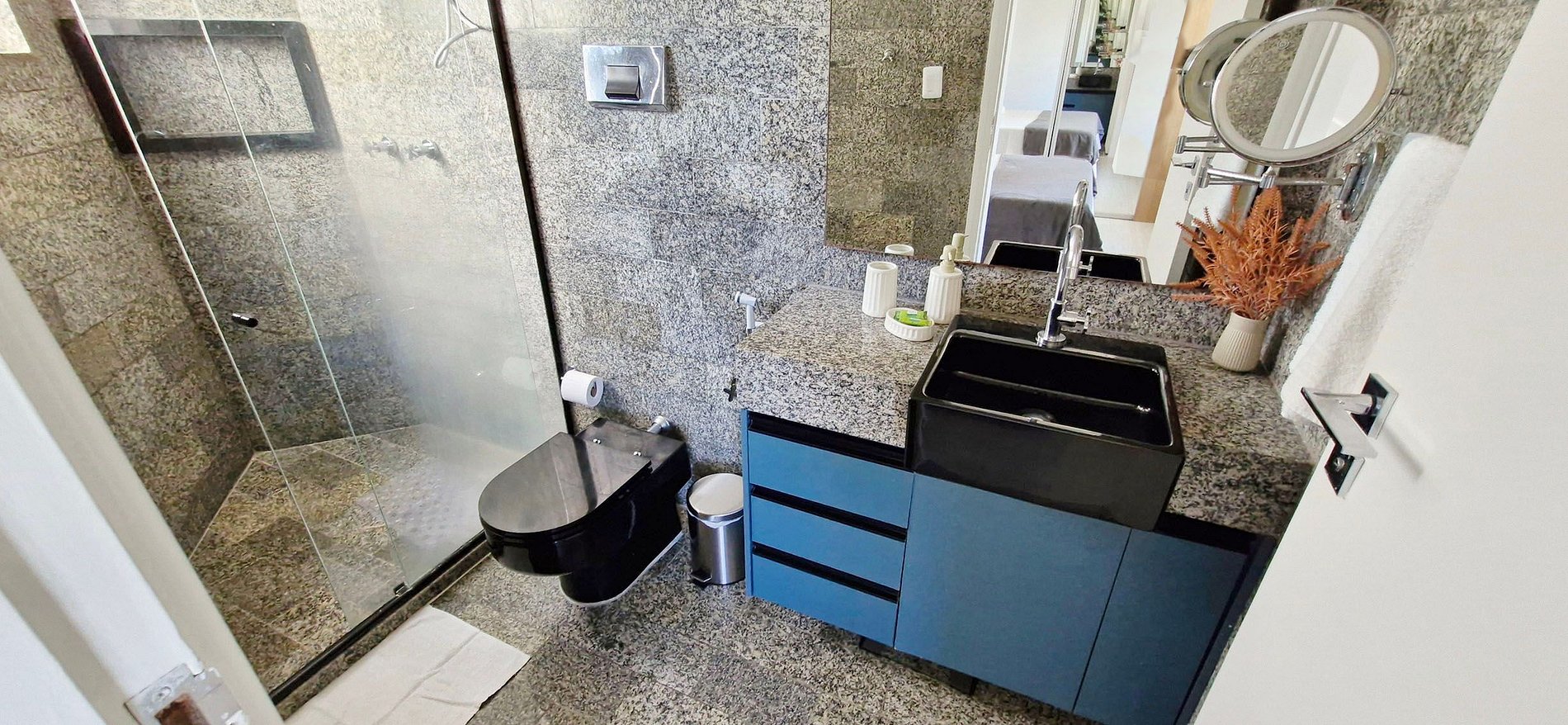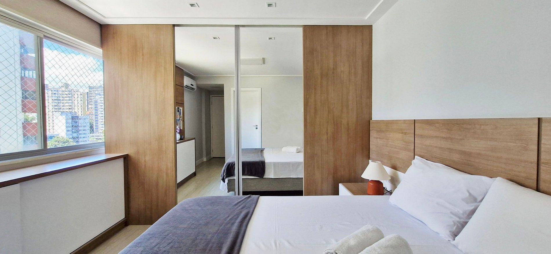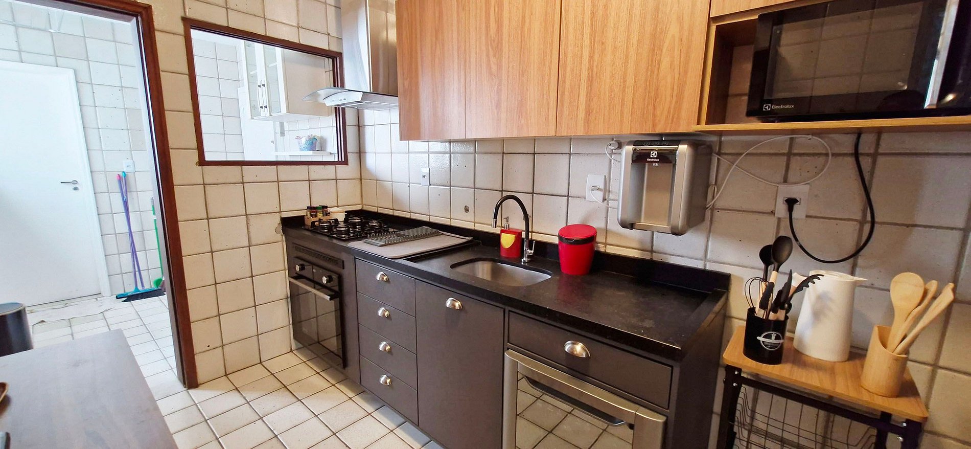 Spacious 3-bedroom apartment with balcony, located near Jardim Apipema and Barra shopping mall. It has a full kitchen, split air conditioning in all bedrooms, work space, SMART TV, high-speed WI-FI. Full kitchen with dishwasher and laundry area with washing machine.