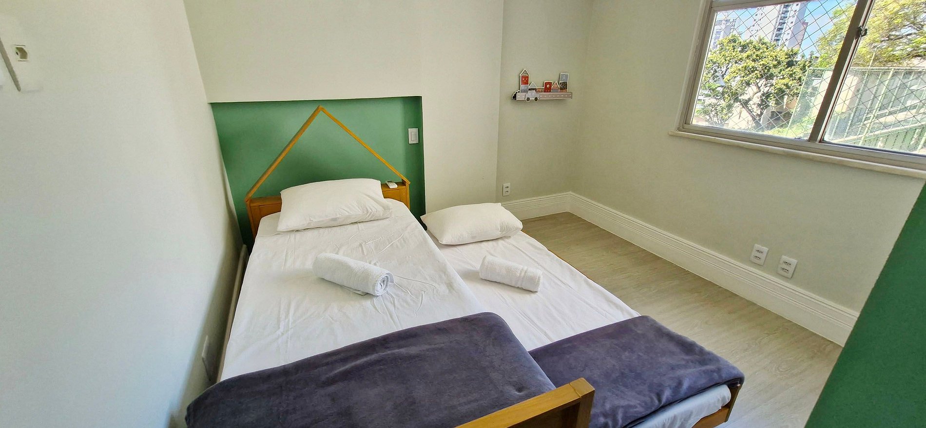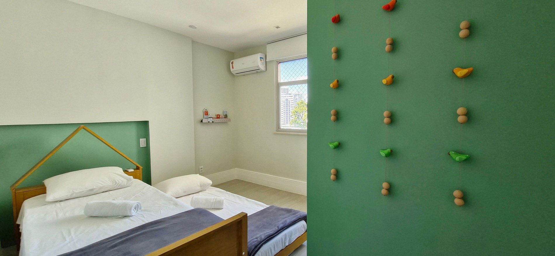 BEDROOM 3 - single bunk bed, split air conditioning, blackout curtain, protective screen, wardrobe with mirror and decorative items