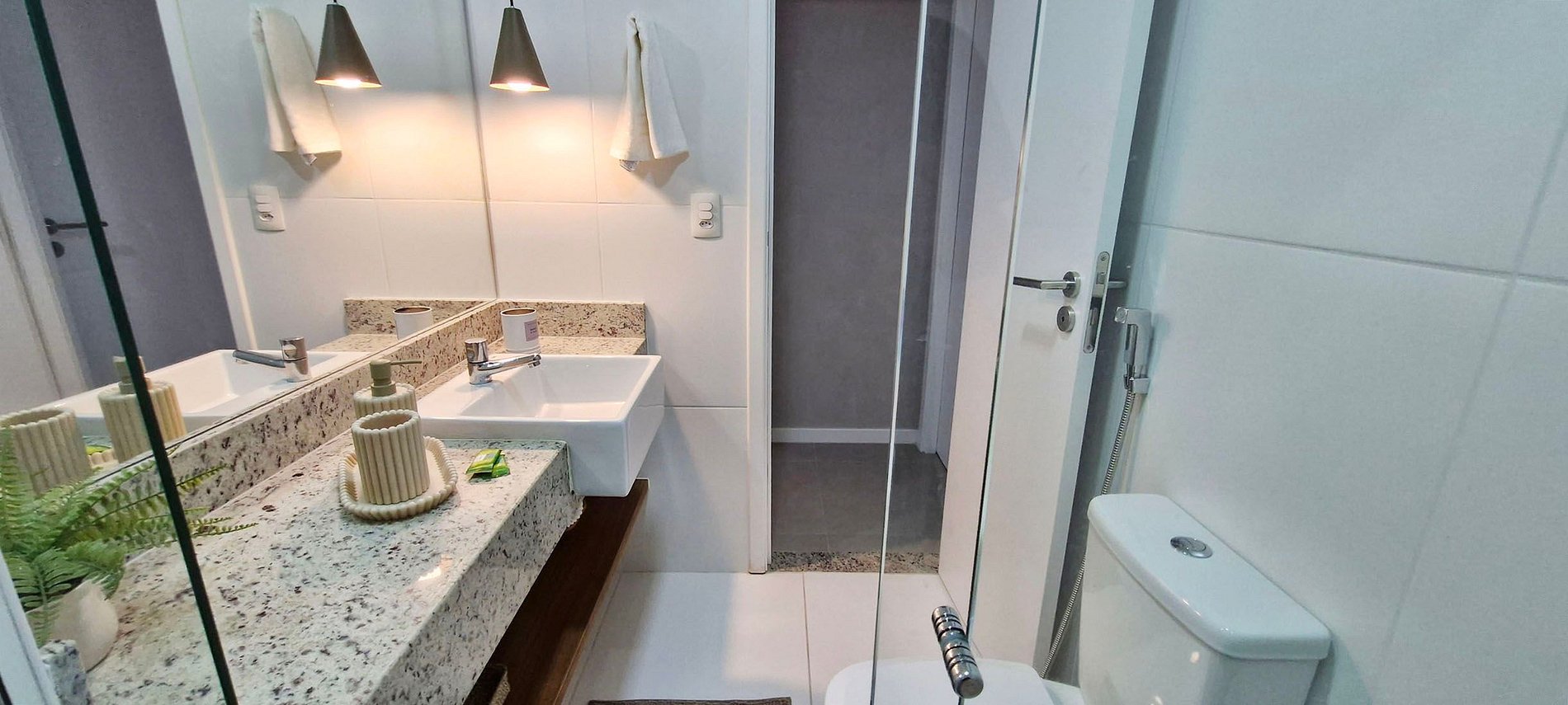 - BATHROOM (SUITE): closet, mirror, shower, bidet, hair dryer and electric shower