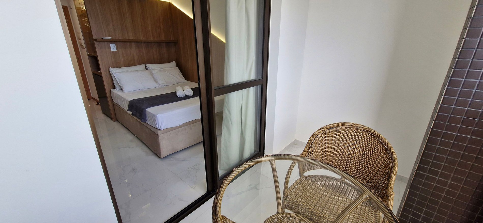 Close to the Convention Center and the beach! Condominium with rooftop pool with sea view, gym, coworking space with meeting room, rotating garage and 24-hour reception. Laundry with separate charge. Next to the Hiperideal supermarket, pharmacy, bars and restaurants. With double bed, smart TV with local antenna, WI-FI, split air conditioning, kitchenette.