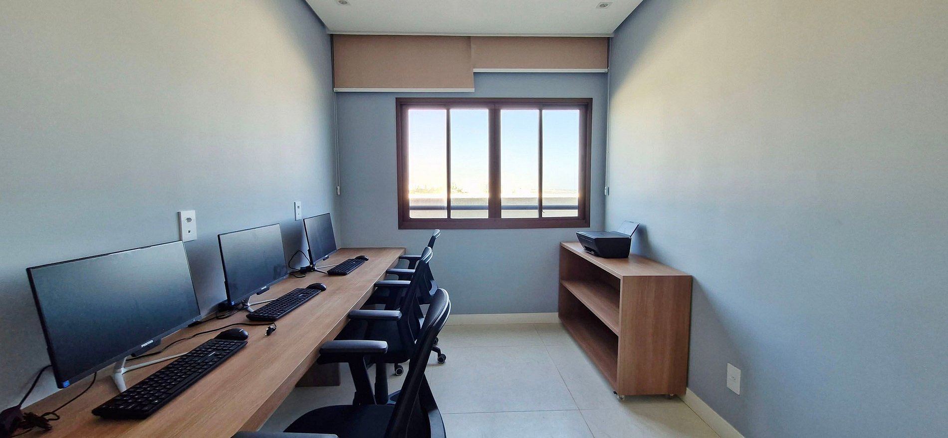 - Fully equipped kitchen with refrigerator, electric cooktop with 2 burners, water filter, counter with chair, electric coffee maker, microwave, sandwich maker, blender, thermos and basic kitchen items.