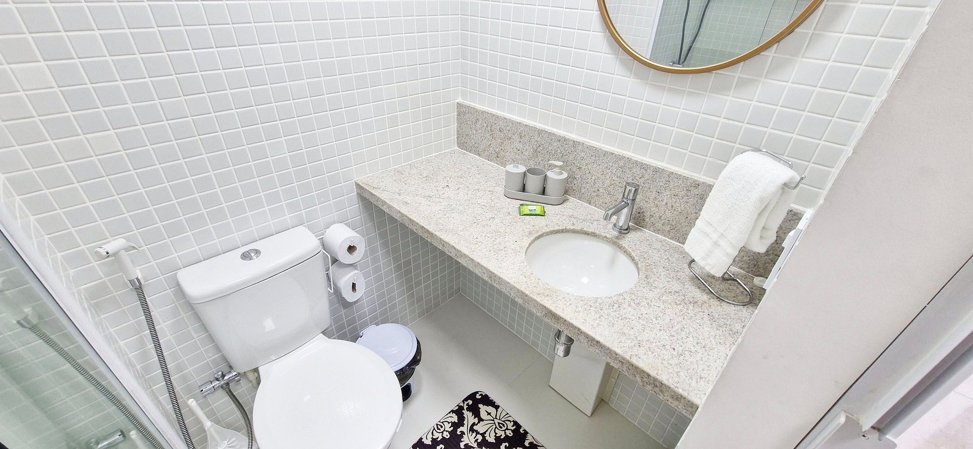 • No solid waste can be flushed down the toilet (including toilet paper), we ask that you use the waste bin provided. Otherwise, the toilet may clog and we charge R$150 to unclog it.
