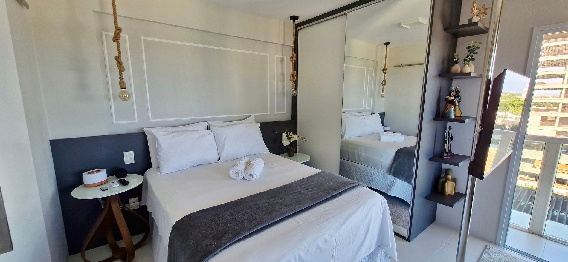 - SUITE: double bed, wardrobe, split air conditioning, aroma lamp, Alexa for music, LED light. BATHROOM: closet, mirror, shower, electric shower and hairdryer.