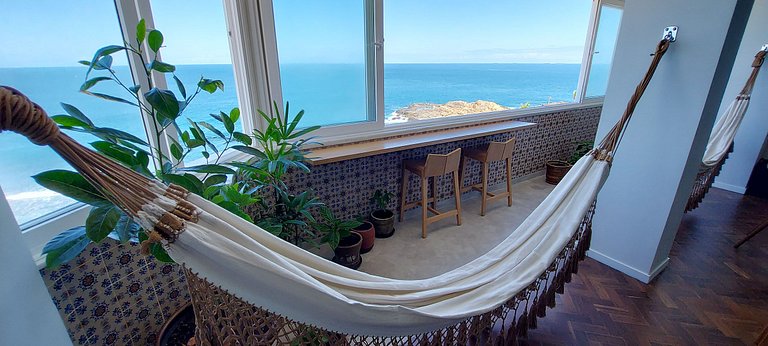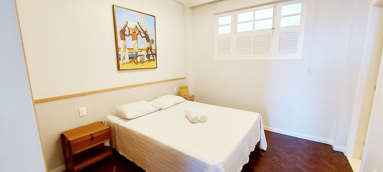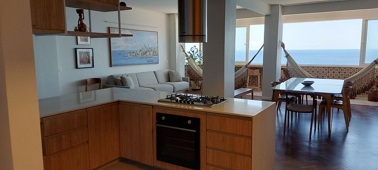 Classic, refined apartment, right in front of the Barra Lighthouse. Full view of the Carnival, right in front of the floats. Large living room with open-concept kitchen, 3 split air conditioners, giant smart TV and 150MB WI-FI. 3 air-conditioned bedrooms (2 suites). Perfect view of the beach and the Barra Lighthouse. Building with gym, games room and a Memorial of the City of Salvador. A unique and unforgettable place!