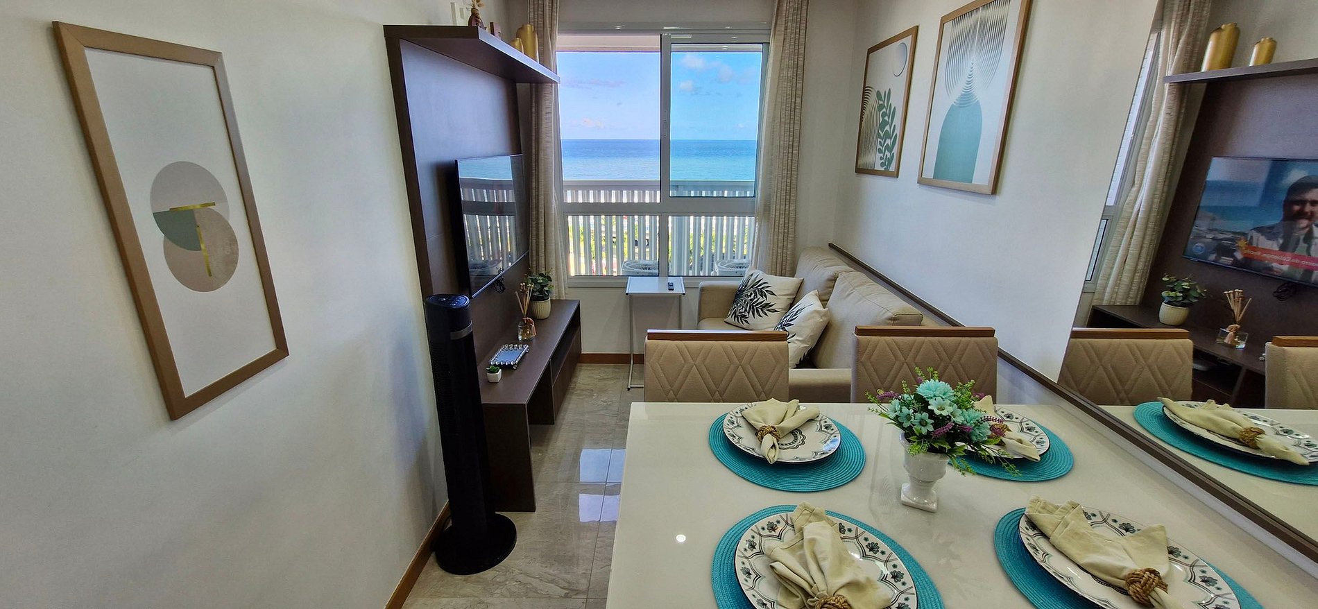 Beautiful 2/4 apartment with 30m², well decorated, in Costa Azul! 5min from the beach, close to supermarket, pharmacy and shops. Bedroom (1) with double bed, smart TV, split air conditioning, wardrobe. Bedroom (2) with 2 single beds, split air conditioning and wardrobe. Living room with smart TV and sofa. Fully equipped kitchen. 24h doorman, gym, swimming pool, co-working space, 1 rotating parking space (only small vehicles).