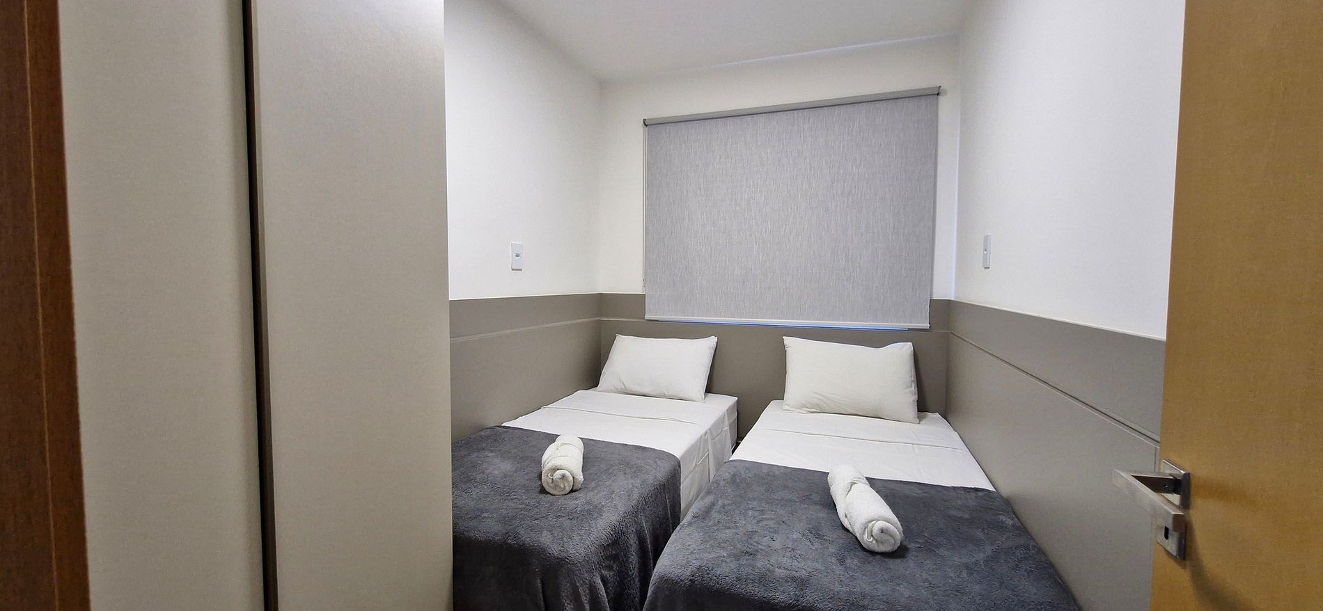 - 2 single beds, wardrobe, split air conditioning, blackout curtains, mini ladder