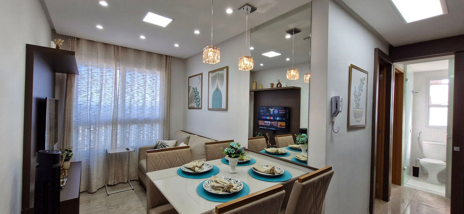 Beautiful 2/4 apartment with 30m², well decorated, in Costa Azul! 5min from the beach, close to supermarket, pharmacy and shops. Bedroom (1) with double bed, smart TV, split air conditioning, wardrobe. Bedroom (2) with 2 single beds, split air conditioning and wardrobe. Living room with smart TV and sofa. Fully equipped kitchen. 24h doorman, gym, swimming pool, co-working space, 1 rotating parking space (only small vehicles).