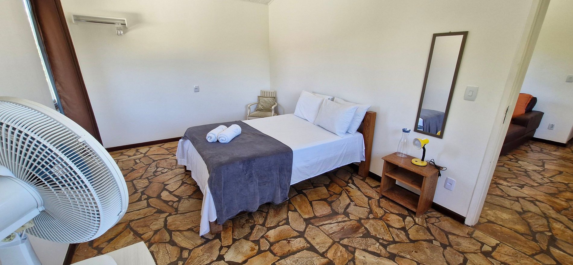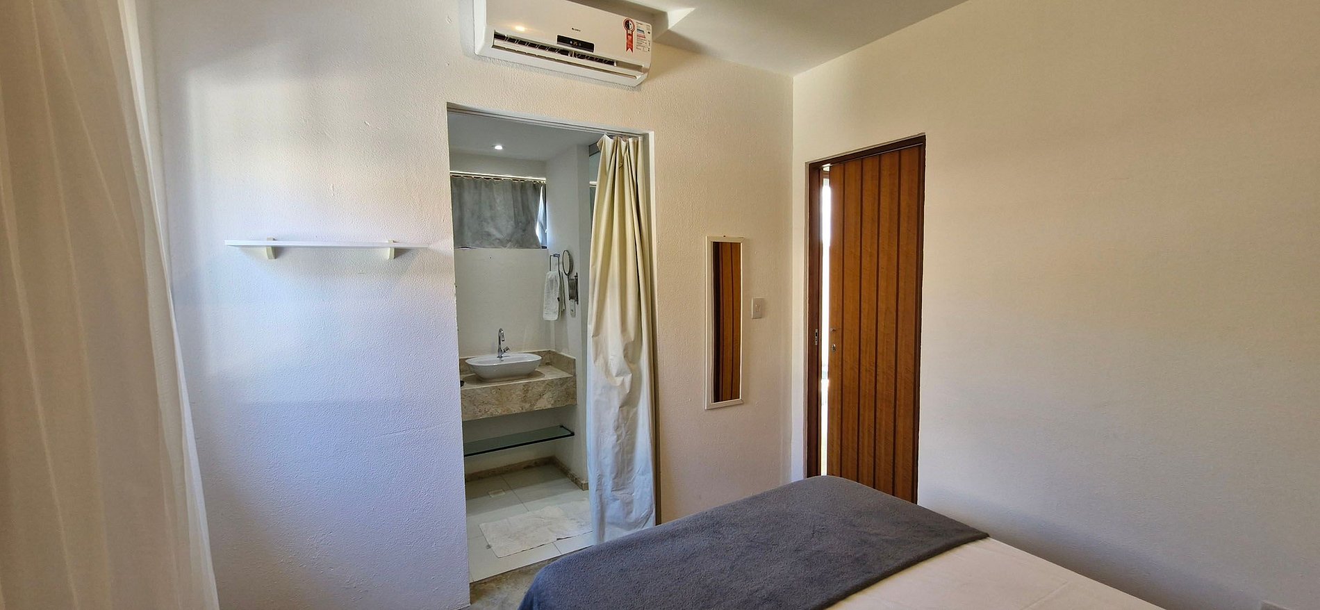 - LIVING ROOM with table and 4 chairs, wardrobe, blackout curtain. BALCONY with hammock. SUITE with double bed, bedside table with lamp, split air conditioning and mirror. BATHROOM with toilet, sink, mirror, shower stall and electric shower.