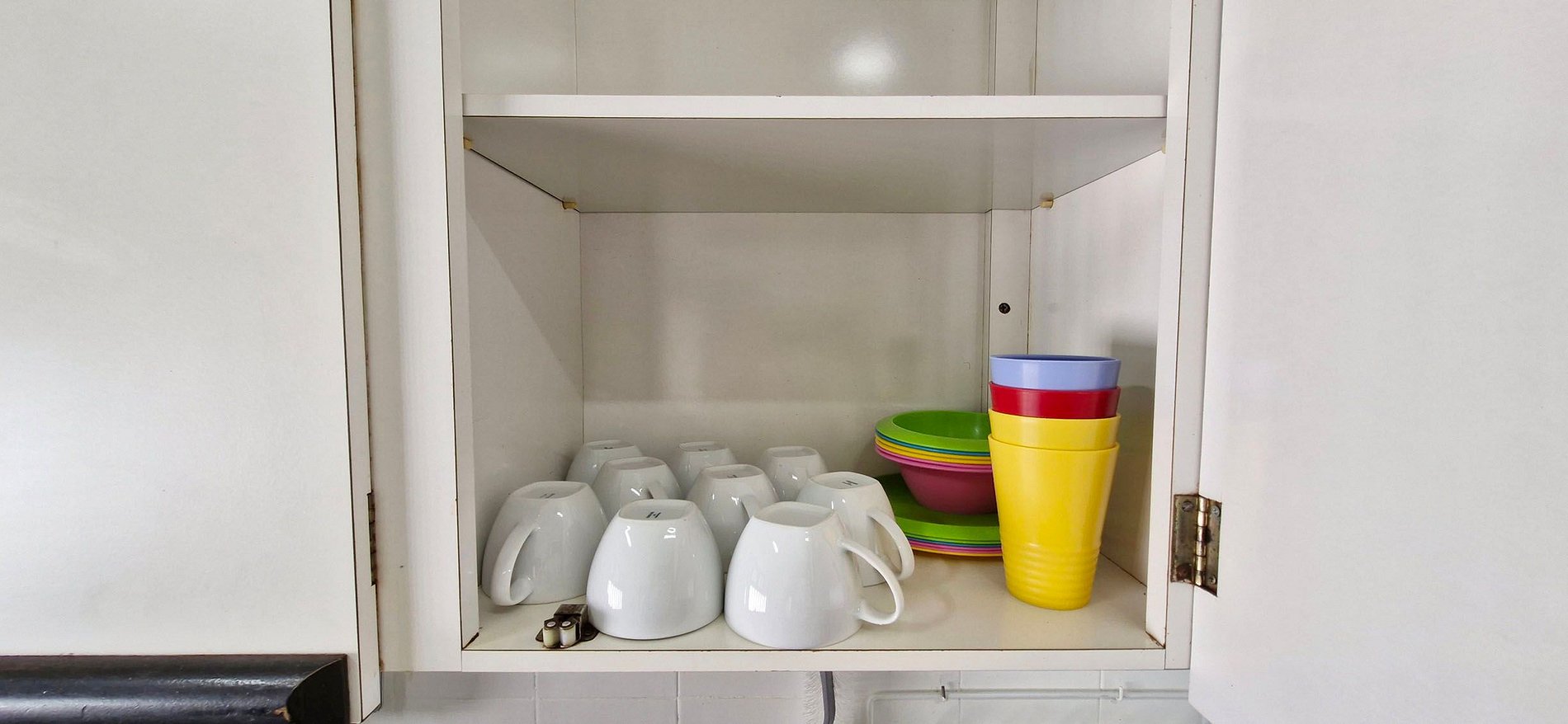- Double-door refrigerator, gas stove, microwave, water filter, electric coffee maker, thermos, sandwich maker, blender, glasses, cups, pans, cutlery, plates and basic kitchen items