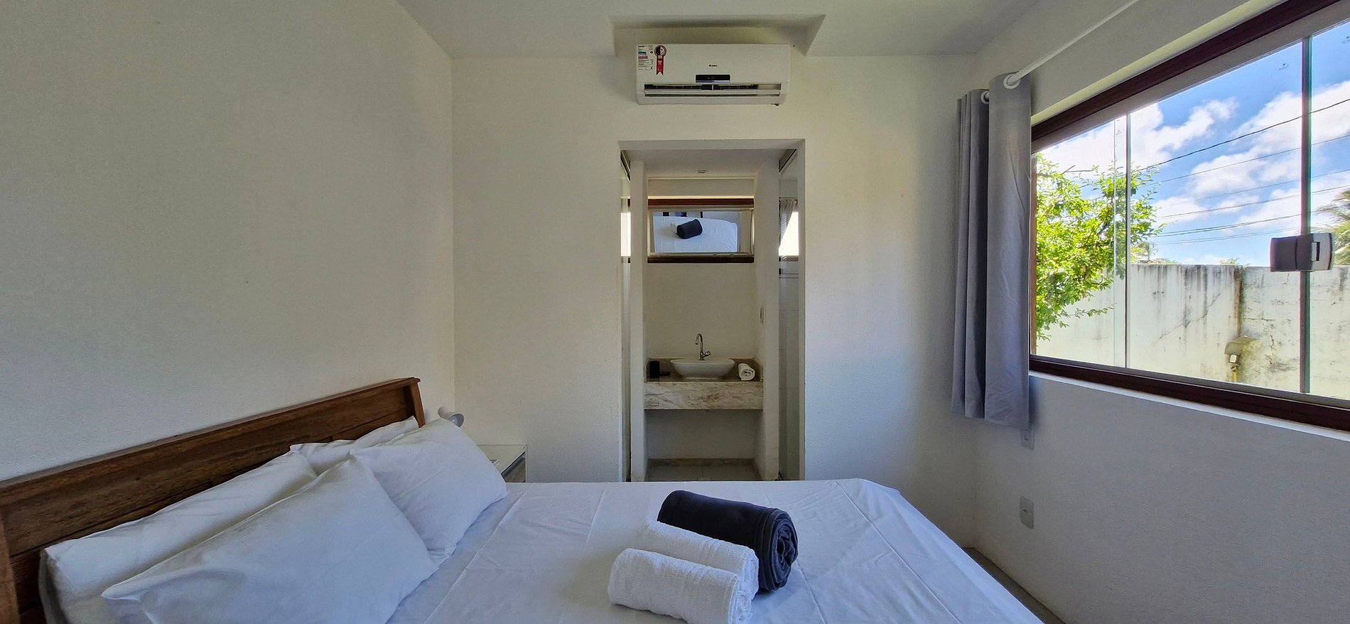 - LIVING ROOM with table and 4 chairs, wardrobe, blackout curtain. BALCONY with hammock. SUITE with double bed, bedside table with lamp, split air conditioning and mirror. BATHROOM with toilet, sink, mirror, shower stall and electric shower.