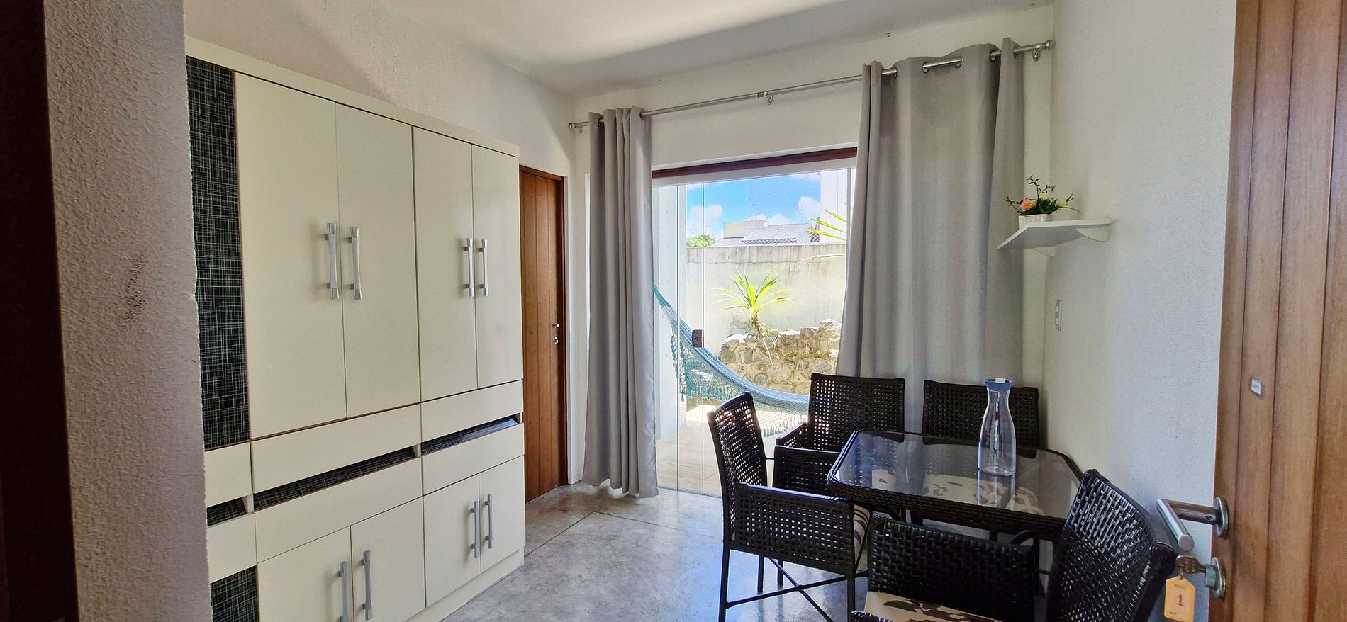 - LIVING ROOM with table and 4 chairs, wardrobe, blackout curtain. BALCONY with hammock. SUITE with double bed, bedside table with lamp, split air conditioning and mirror. BATHROOM with toilet, sink, mirror, shower stall and electric shower.