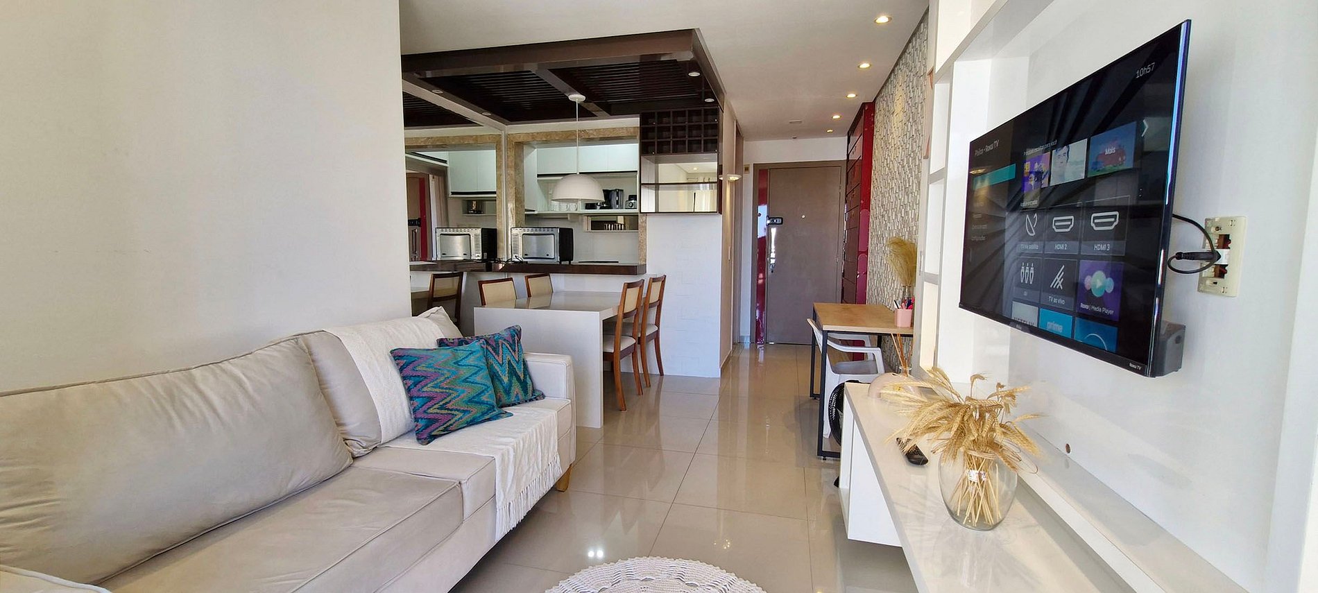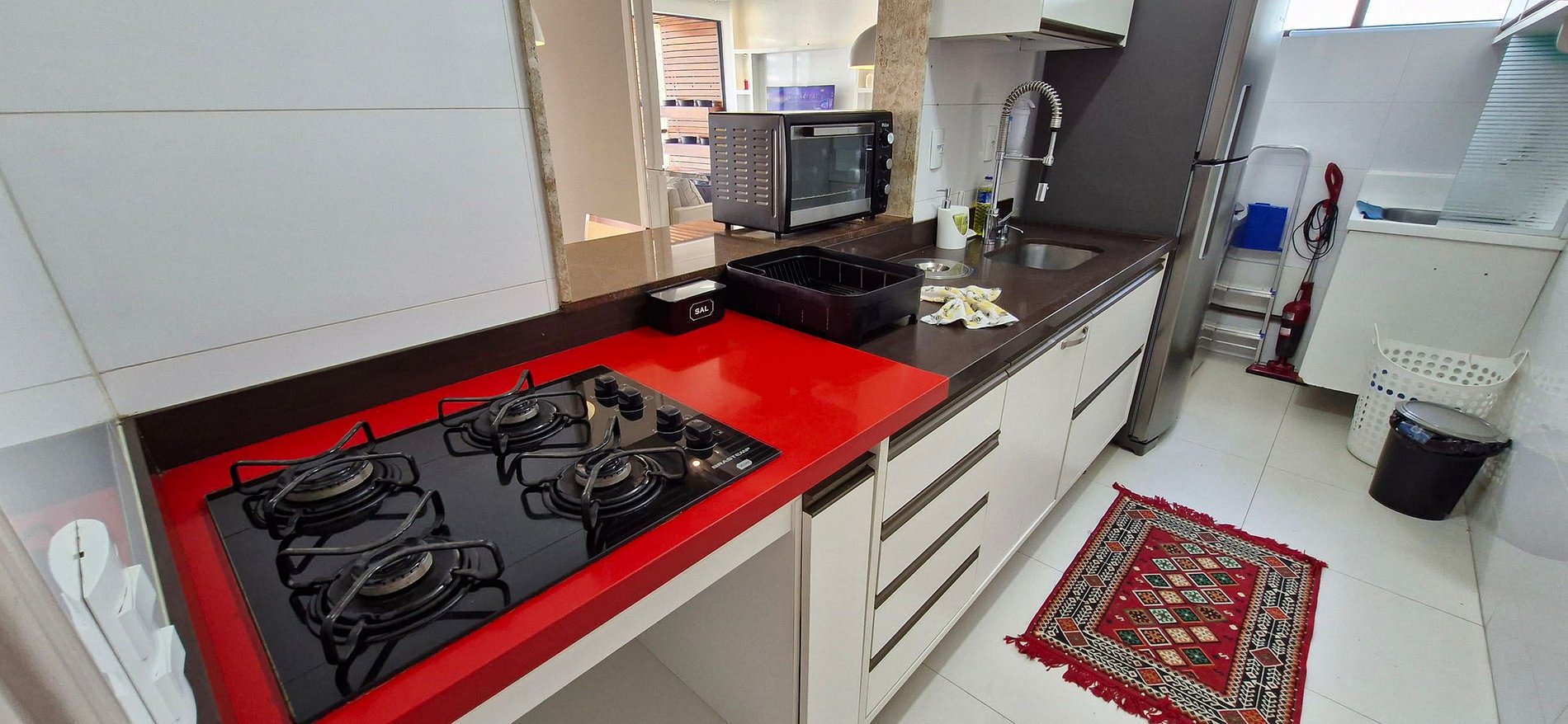 Top floor apartment with balcony, well ventilated on Mater Dei Hospital street in Rio Vermelho. Well decorated with full kitchen and washing machine. Living room with smart TV and local channels, WI-FI, balcony, kitchen with service area, one double bedroom and one suite.
