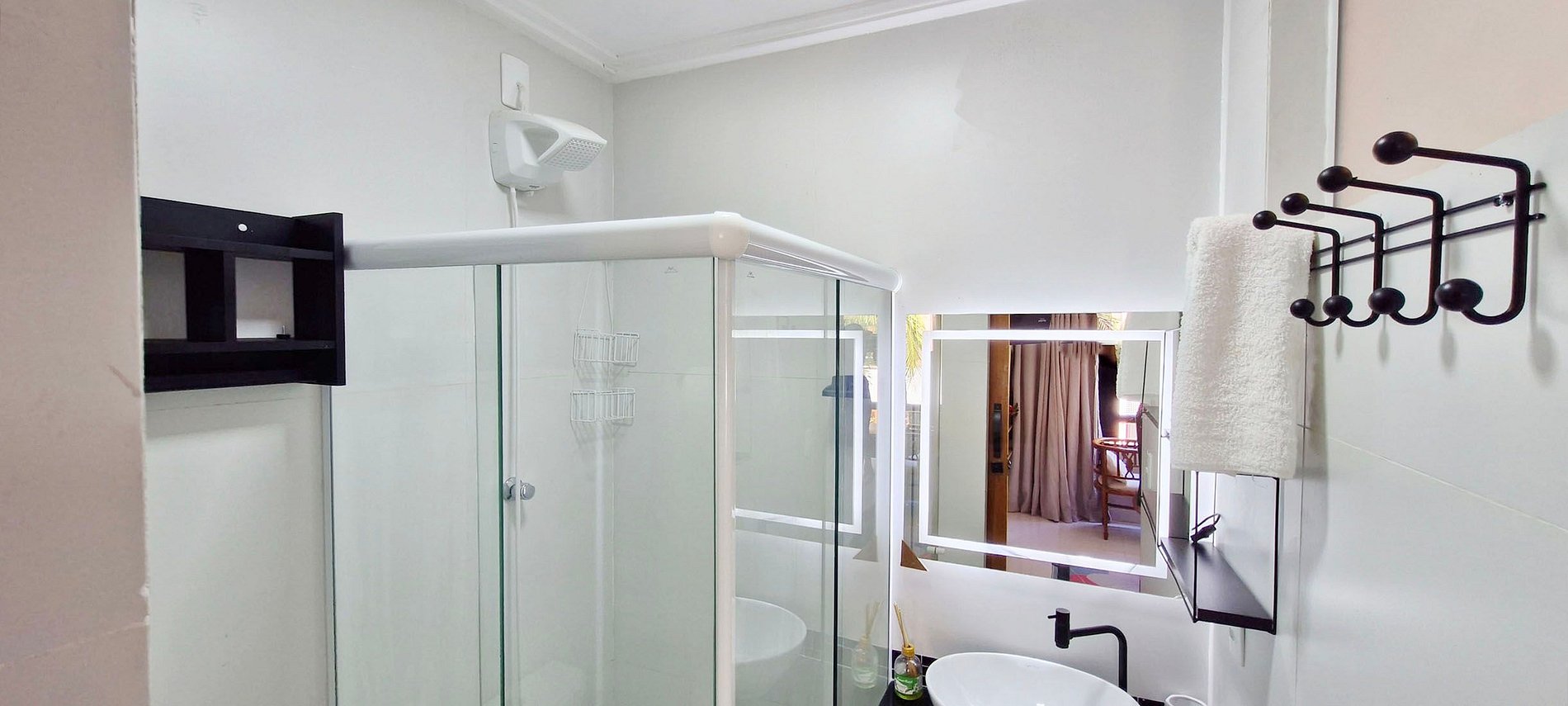 - BATHROOM with sink, mirror, bidet, shower and electric shower