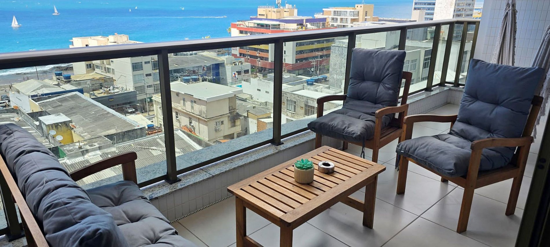 Beautiful apartment with an incredible sea view in a refined condominium in Barra! Close to the Barra-Ondina Carnival circuit! Large living room with split air conditioning, double sofa bed, SMART TV, WI-FI 300MB, bedroom with queen bed and split air conditioning, equipped kitchen. Building with swimming pool, gym, garage with electric vehicle charger and 24-hour reception. An unforgettable experience!
