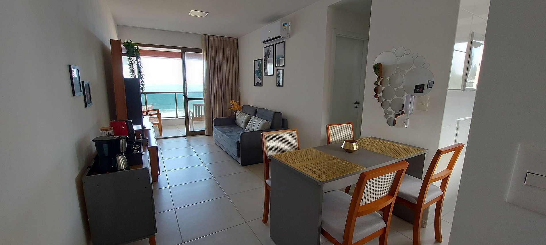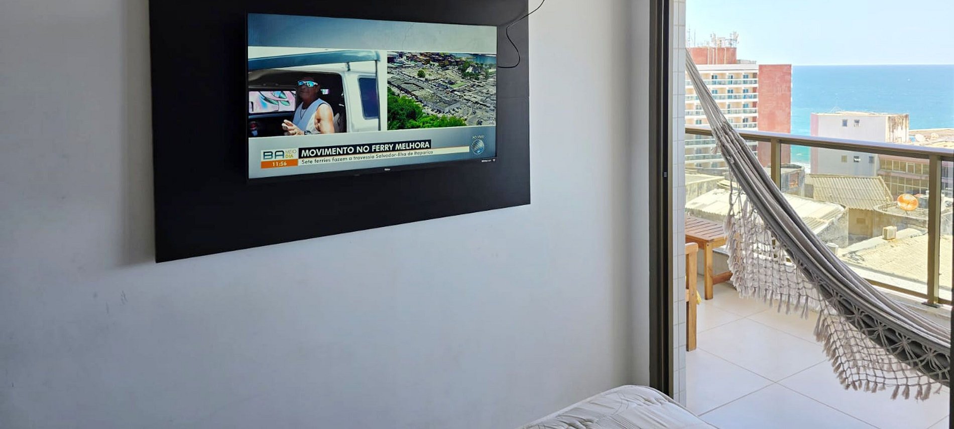 Beautiful apartment with an incredible sea view in a refined condominium in Barra! Close to the Barra-Ondina Carnival circuit! Large living room with split air conditioning, double sofa bed, SMART TV, WI-FI 300MB, bedroom with queen bed and split air conditioning, equipped kitchen. Building with swimming pool, gym, garage with electric vehicle charger and 24-hour reception. An unforgettable experience!