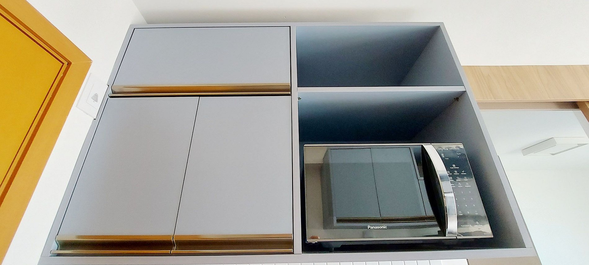 - Fully equipped kitchen with duplex refrigerator, electric oven, cooktop with 2 burners, air purifier, water filter, microwave, sandwich maker, blender, electric coffee maker and basic kitchen items.
