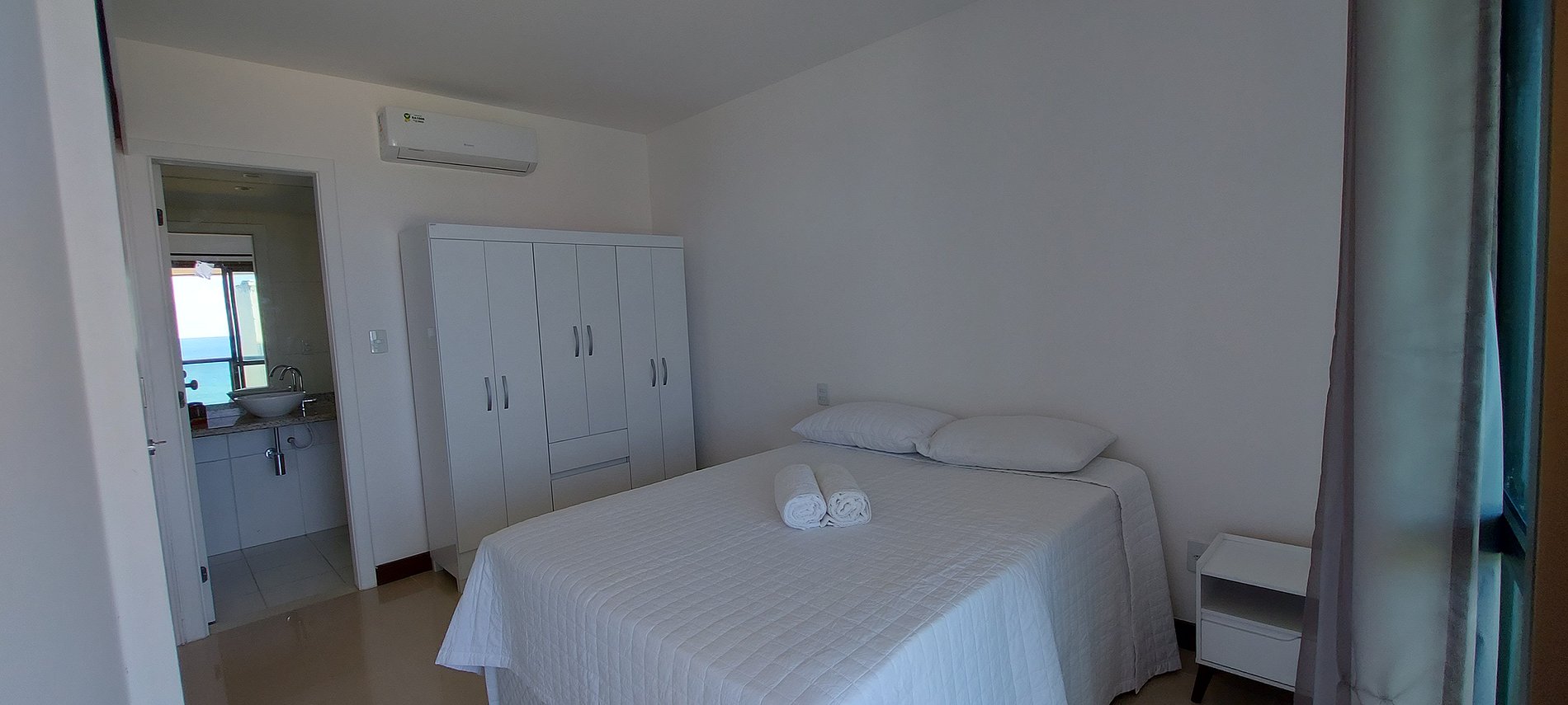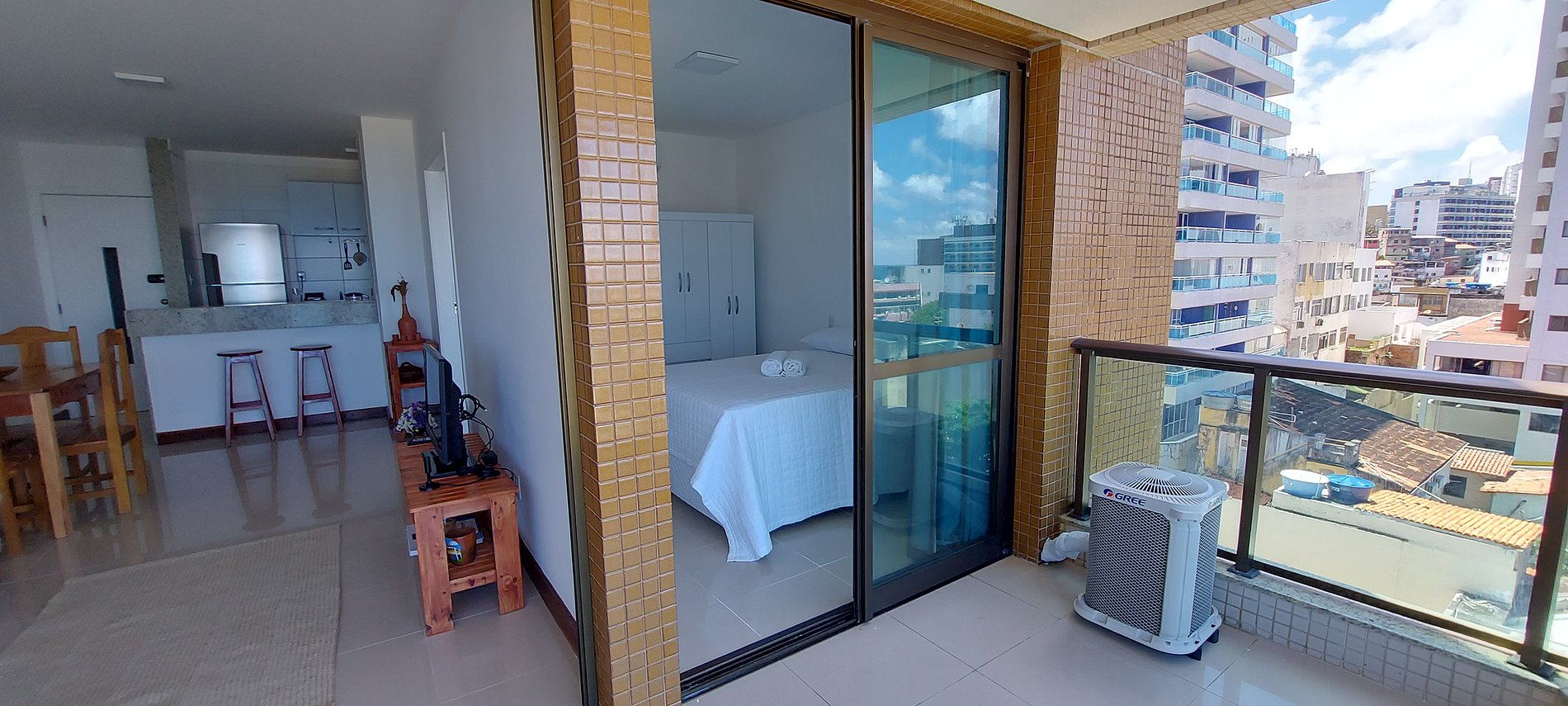 Beautiful apartment with an amazing sea view in a new condominium in Barra! Very close to Barra shopping and the Barra-Ondina Carnival circuit! Living room with sofa bed, TV with local channels (not a smart TV), WI-FI, bedroom with double bed and split air conditioning, equipped kitchen. Building has a pool, gym, parking, and 24-hour reception.