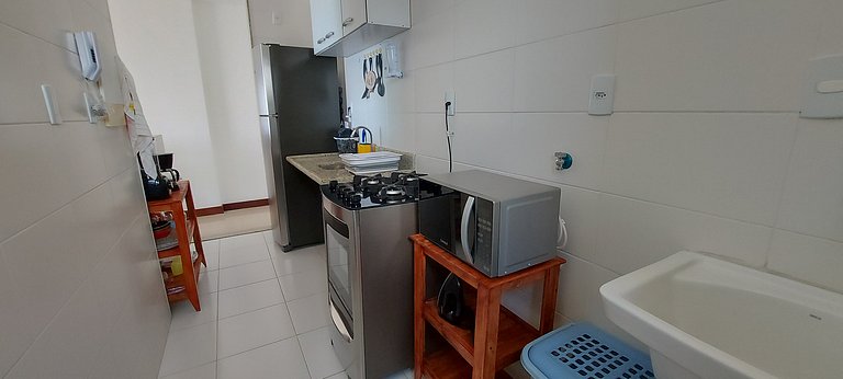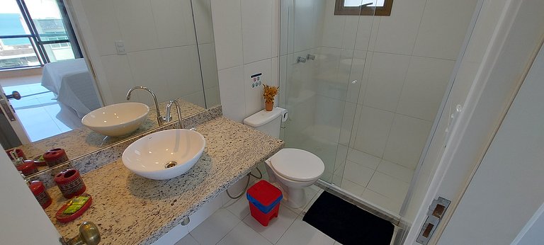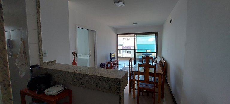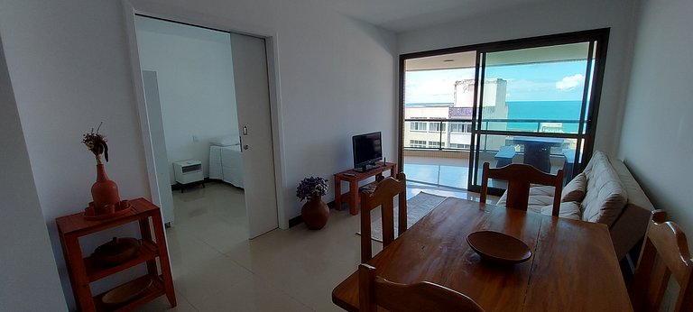Beautiful apartment with incredible sea views in a new condominium in Barra! Close to the Barra shopping mall and the Barra-Ondina Carnival circuit! Living room with sofa bed, TV with local channels (not smart TV), WI-FI, bedroom with double bed and split air conditioning, equipped kitchen. Building with swimming pool, garage and 24-hour reception.