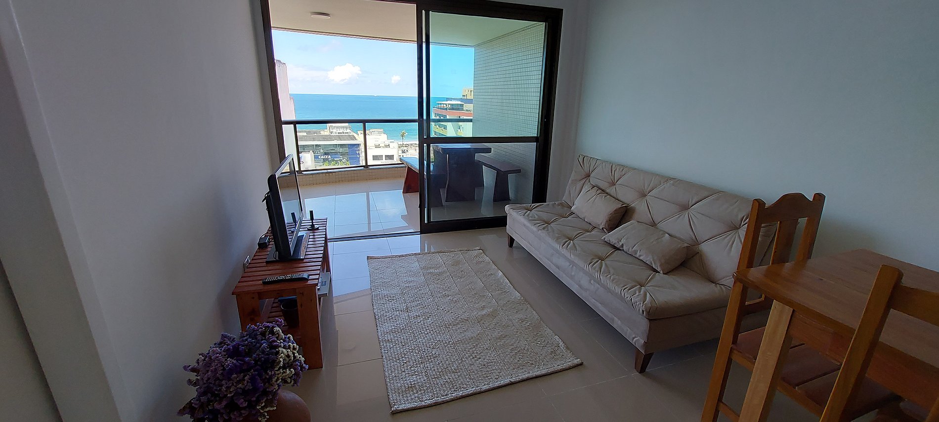 Beautiful apartment with incredible sea views in a new condominium in Barra! Close to the Barra shopping mall and the Barra-Ondina Carnival circuit! Living room with sofa bed, TV with local channels (not smart TV), WI-FI, bedroom with double bed and split air conditioning, equipped kitchen. Building with swimming pool, garage and 24-hour reception.