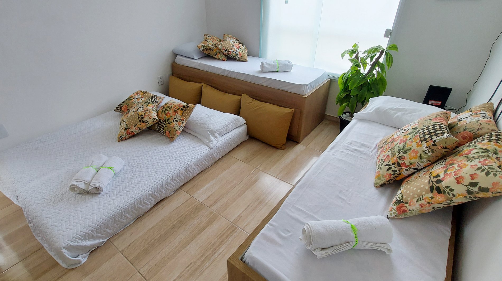 - ADJUST TO YOUR NEEDS: It has 1 bunk bed (which can be used as a single bed or placed side by side to form a double bed), there are 2 more single beds and 1 retractable single bed in the area from the balcony.