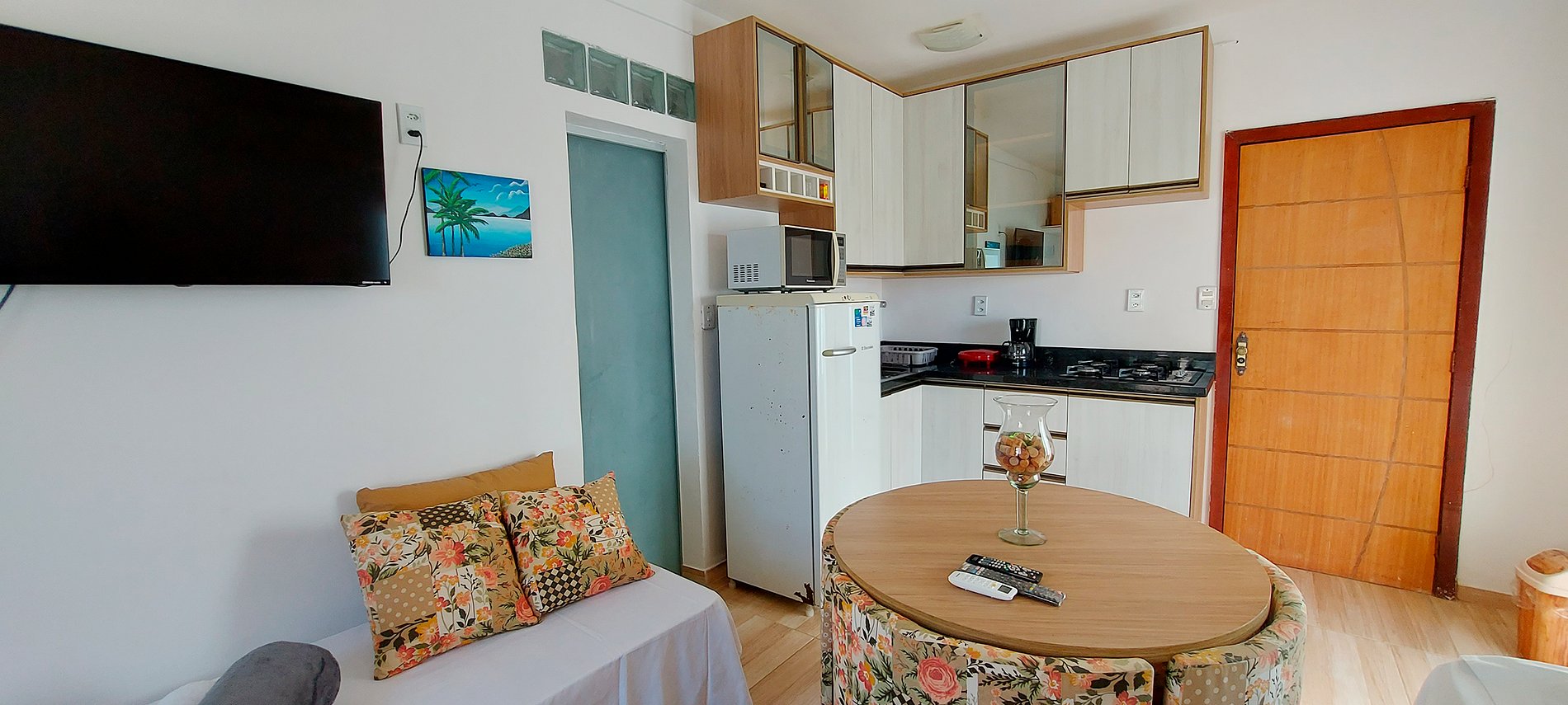 Simple residential condominium with direct exit to the beach, parking, collective barbecue. Apartment with side sea view. It has a smart TV, 60MB WIFI, split air conditioning and ceiling fan.
