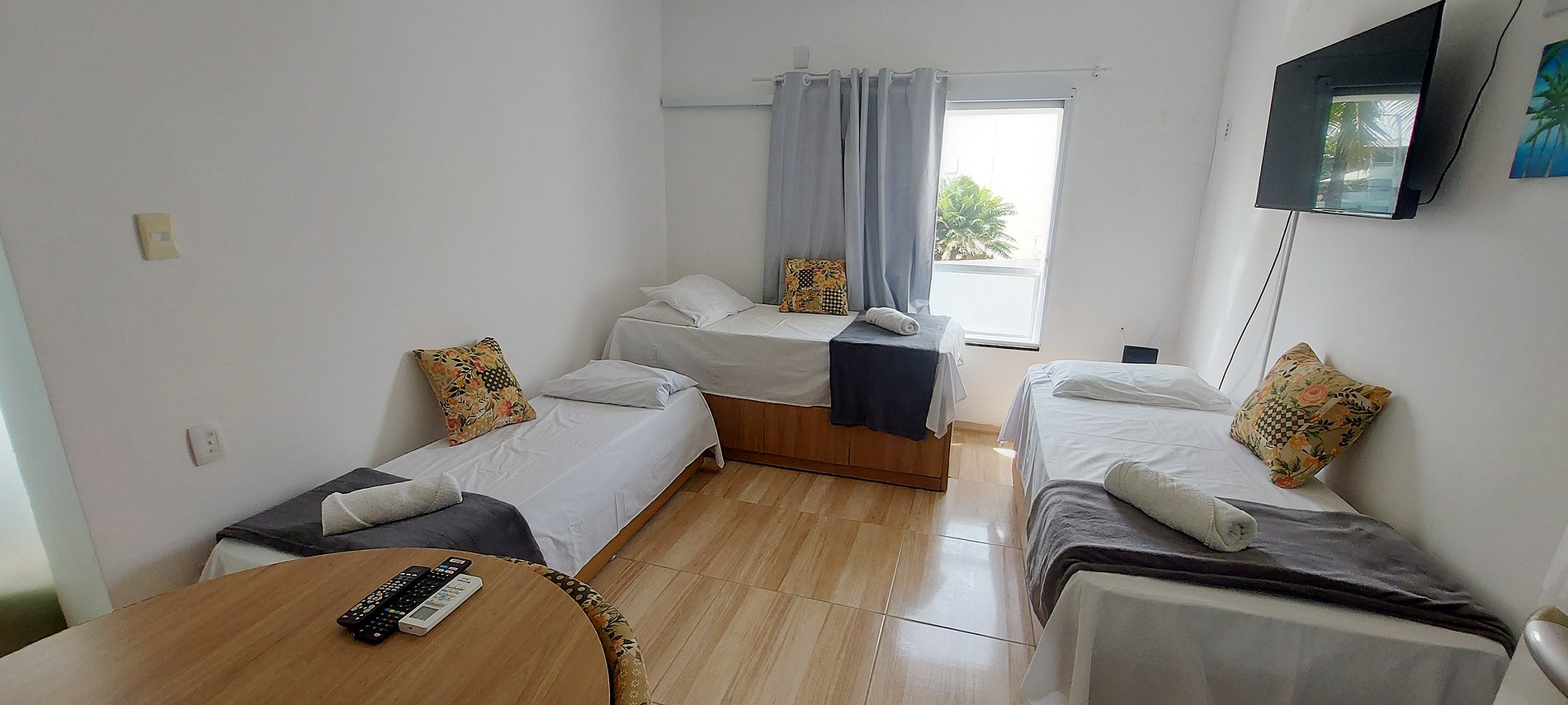 Simple residential condominium with direct exit to the beach, parking, collective barbecue. Apartment with side sea view. It has a smart TV, 60MB WIFI, split air conditioning and ceiling fan.