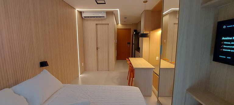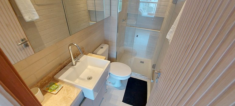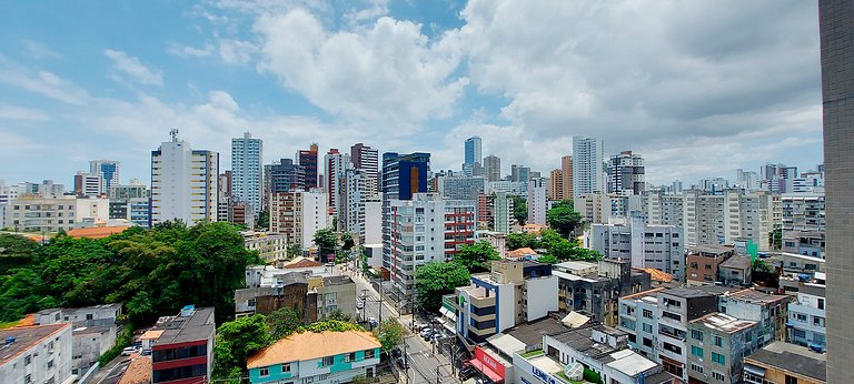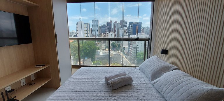 Beautiful apartment, very well located in a new condominium in Barra! Close to the Barra shopping mall and the Barra-Ondina Carnival circuit! With double bed, smart TV with local channels, WI-FI, split air conditioning, full kitchen. Penthouse with swimming pool and gym. It has a rotating garage and 24-hour reception. Games room, coworking, meeting room. Laundry with separate charge.